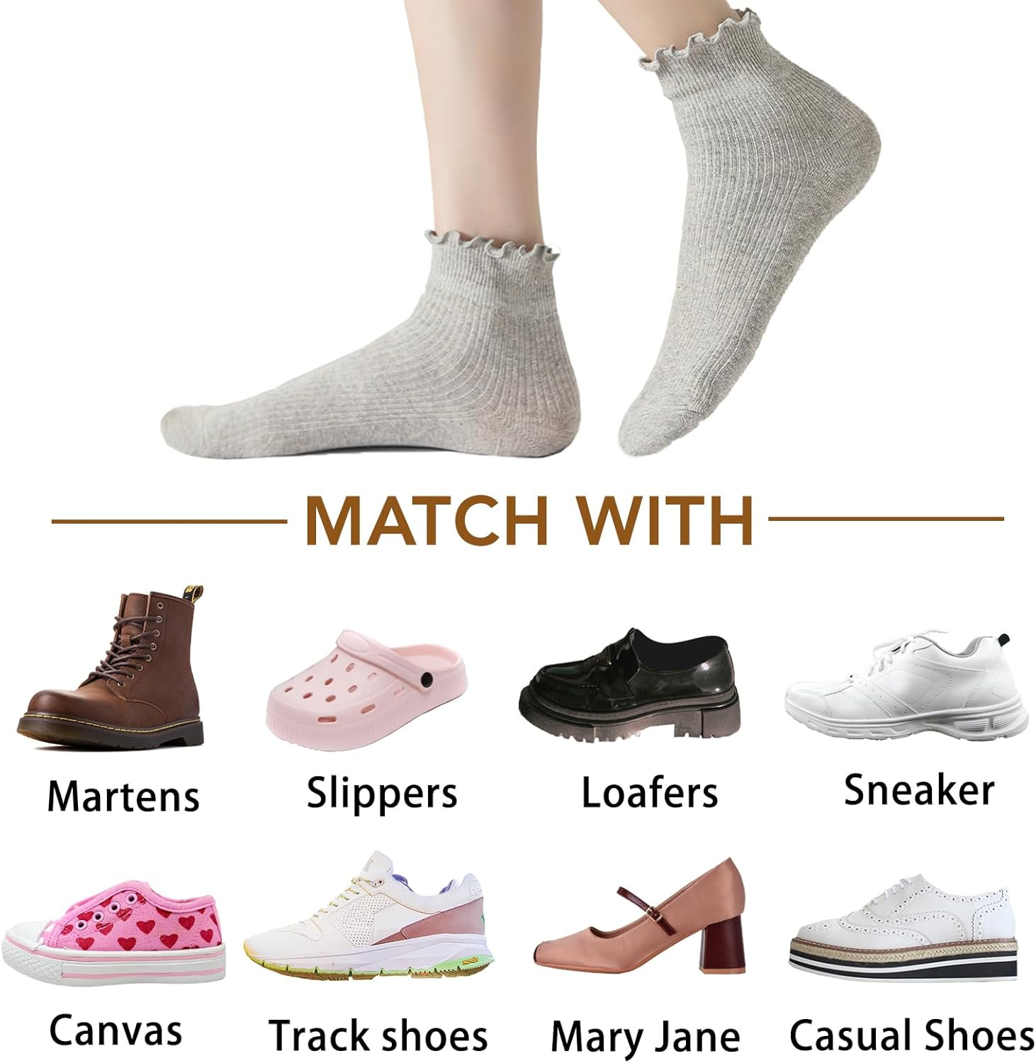 8 Pairs Frilly Socks Women,Ruffle Socks for Girl Women,Solid Color Lettuce Edge