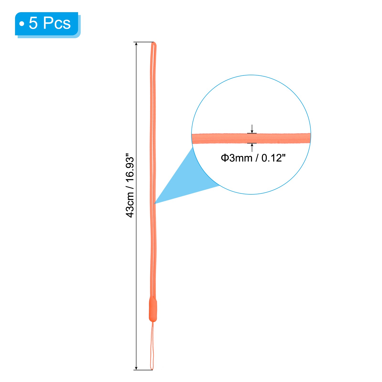 43cm Silicone Wrist Strap Lanyards, 5 Pcs Long Lanyard, Orange