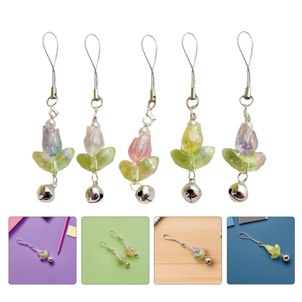 5 Pcs Phone Strap Charm Cell Lanyard Decoration Mobile Pendant Flower