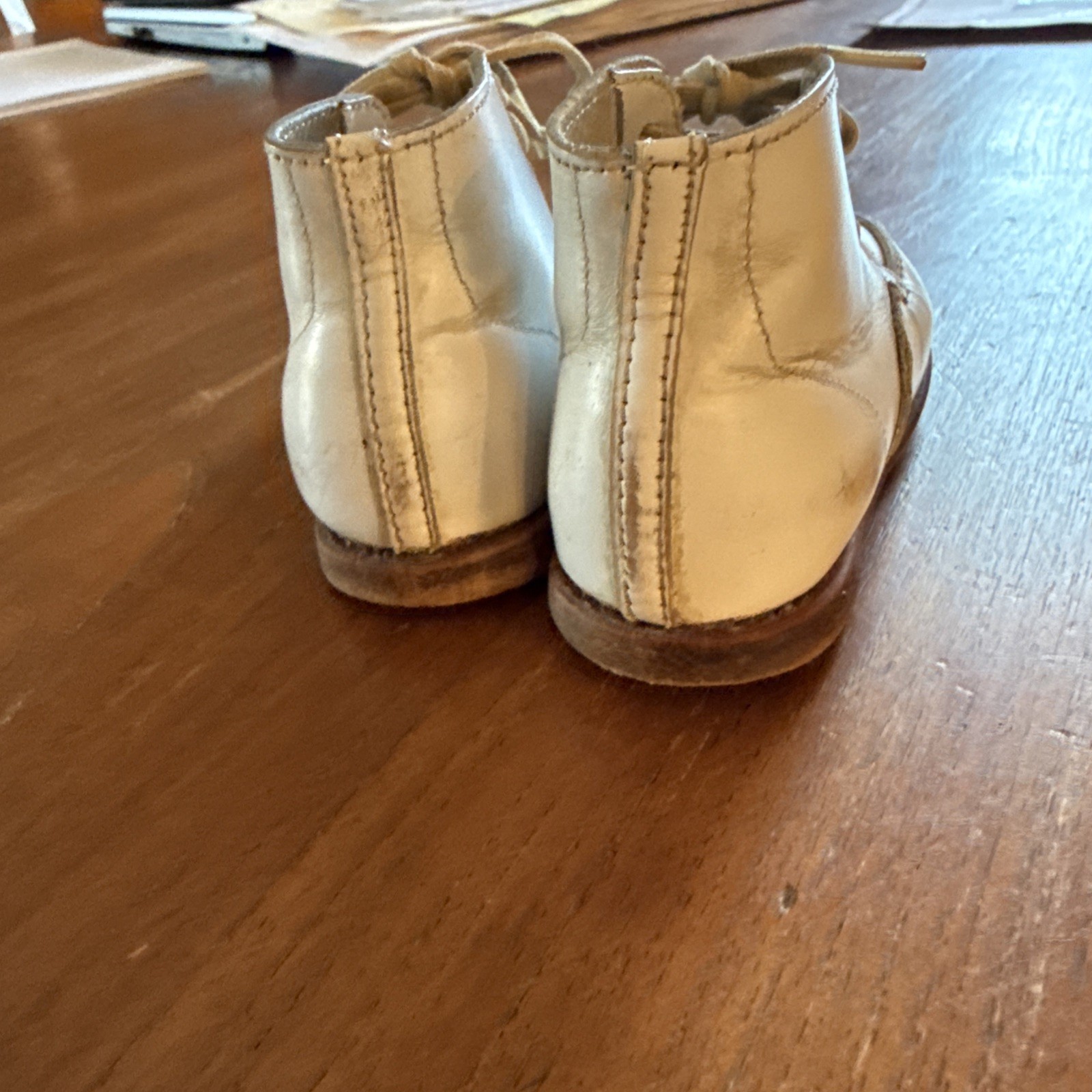 как выглядит Vintage Kinney Kids Childrens Shoes White Hard Sole Made In USA Leather фото