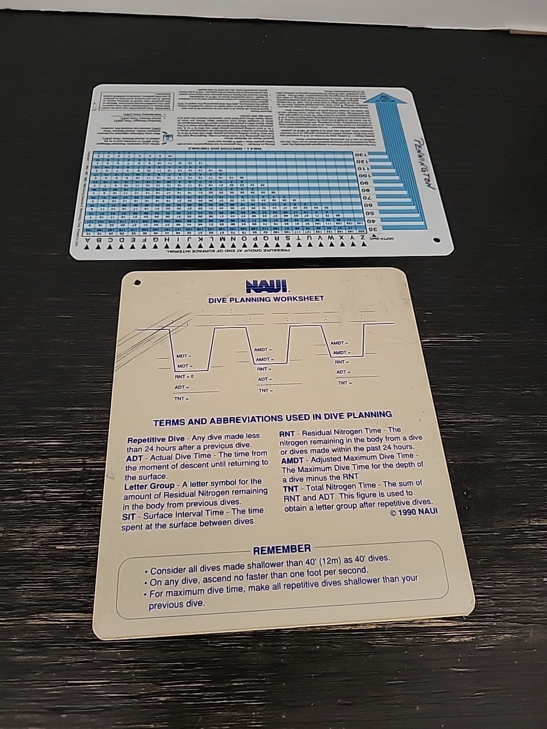 как выглядит 1989 PADI International Recreational Dive Planner Chart NAUI Dive Tables фото