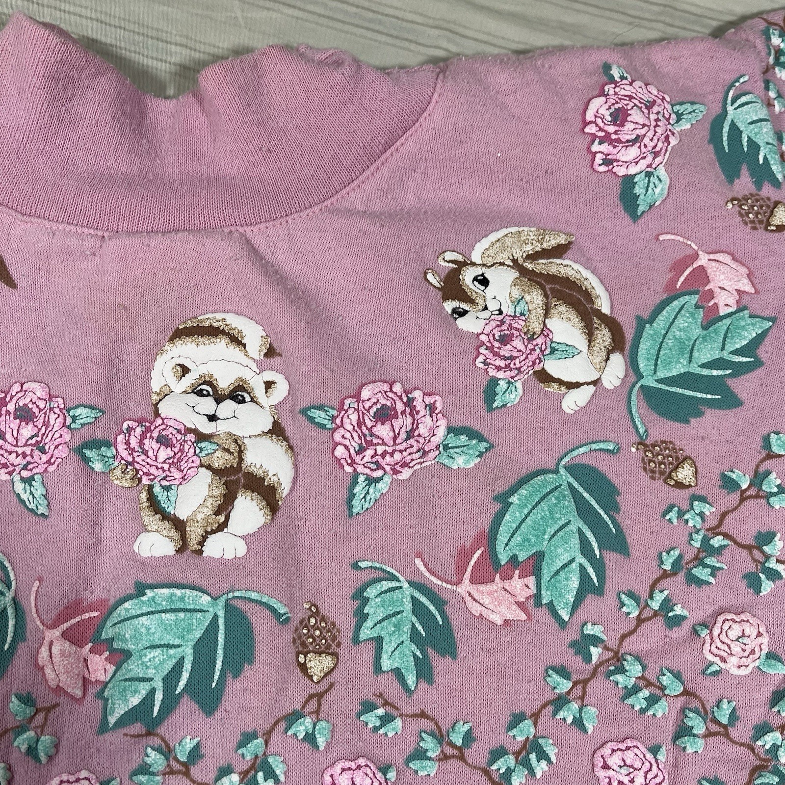 как выглядит Rare VTG Spumoni Puff Print Romper Bunny Squirrel Roses Snap Leg 18 Months фото