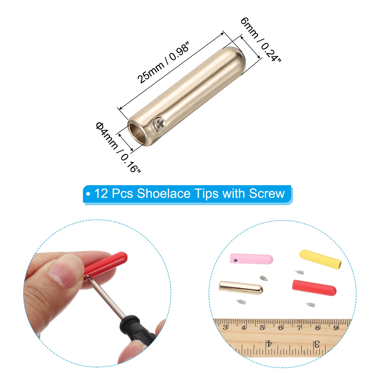 12 Pcs Shoelace Tips with Screw, Alloy 25mm Aglets End Tip for DIY, Gold Tone
