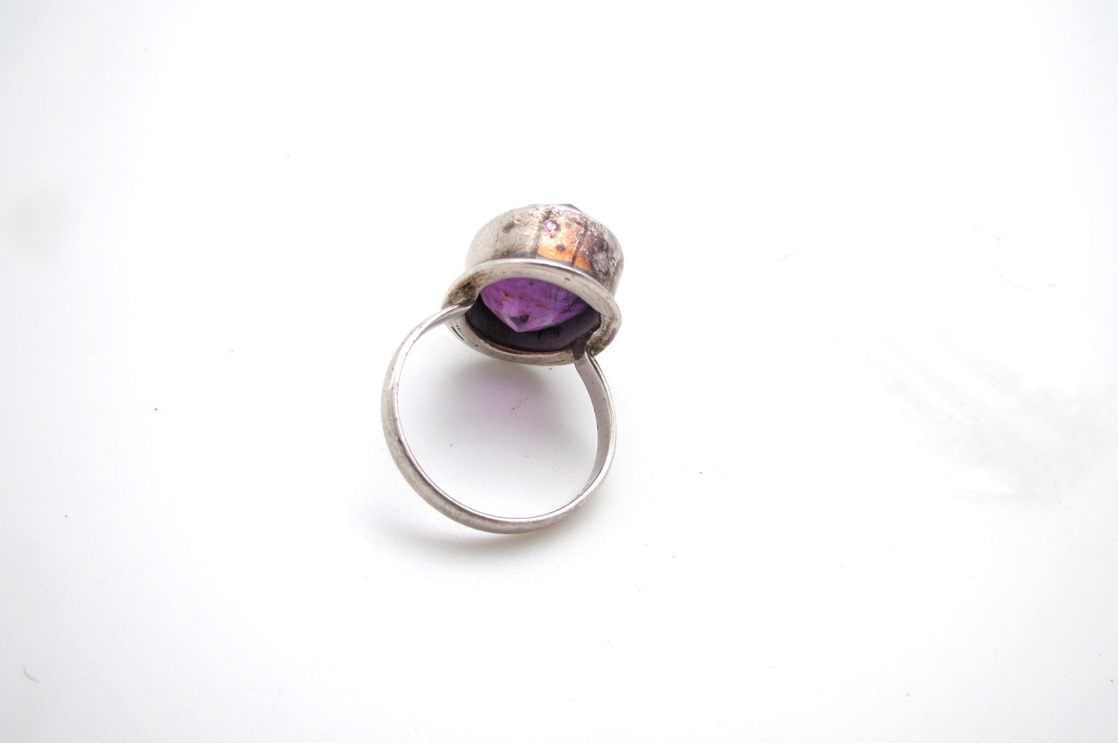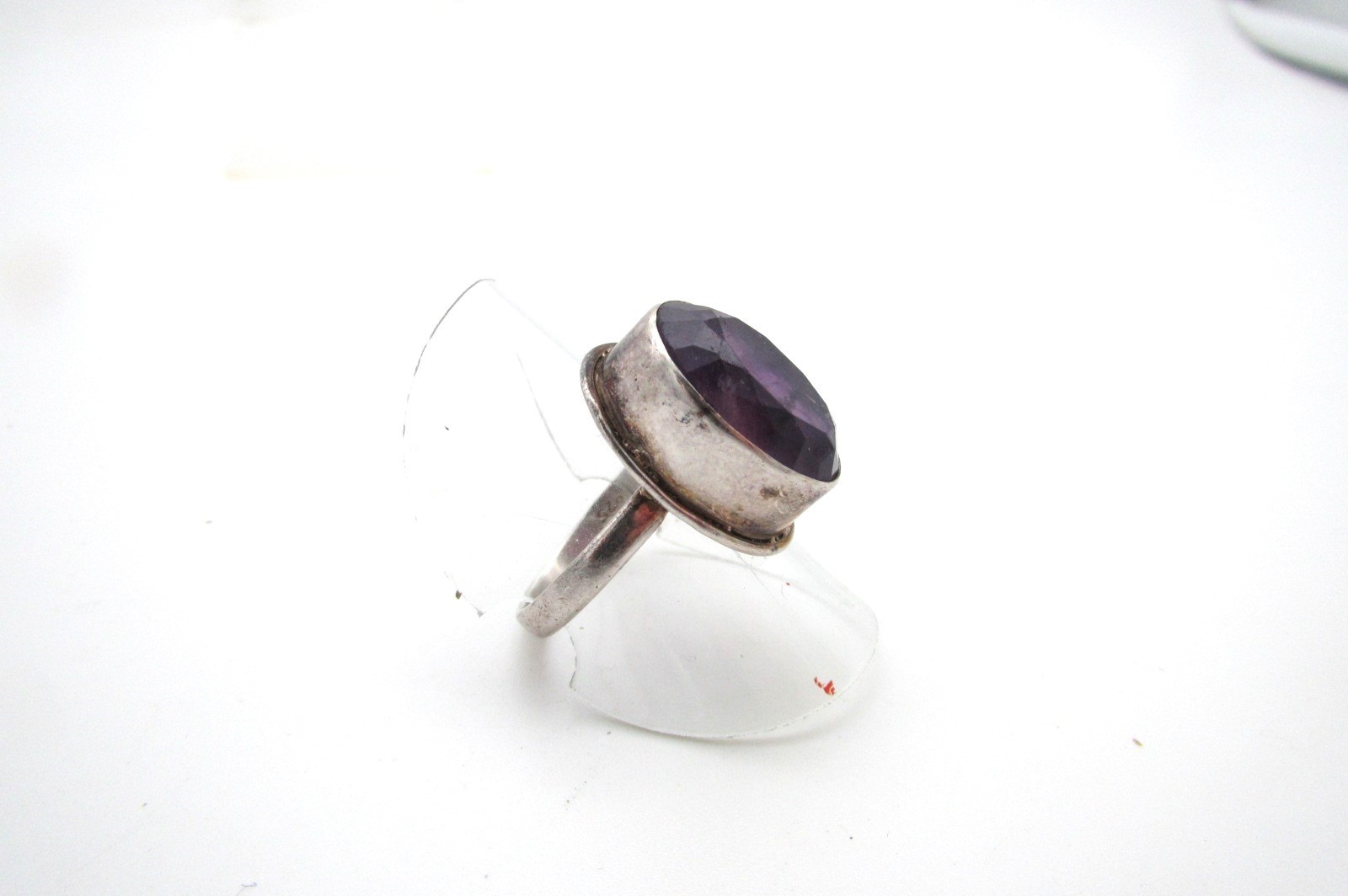 как выглядит Vtg Sterling Ring w/Large Faceted Amethyst Solitaire - Sz 8.5 фото