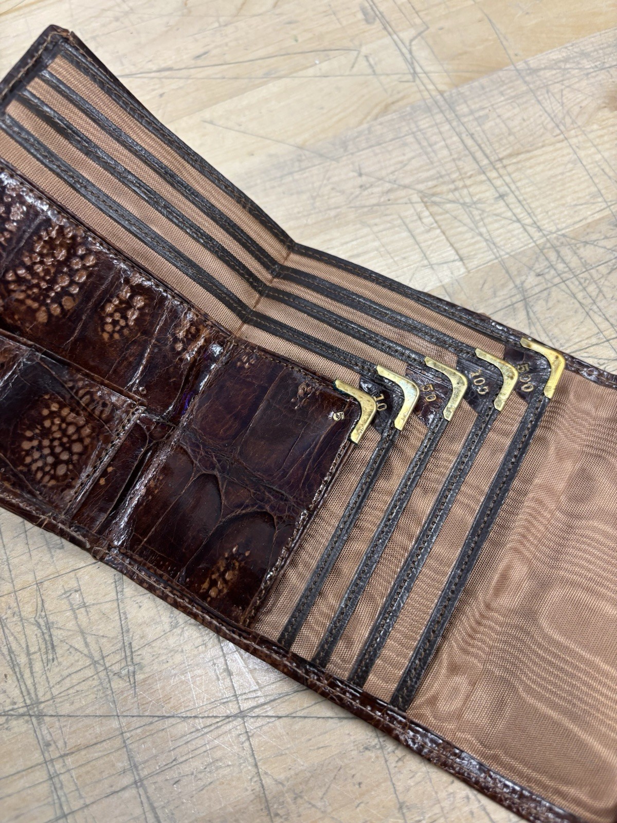 как выглядит Vintage Genuine Dark Cognac Brown Alligator Leather Passport Holder Wallet Set фото