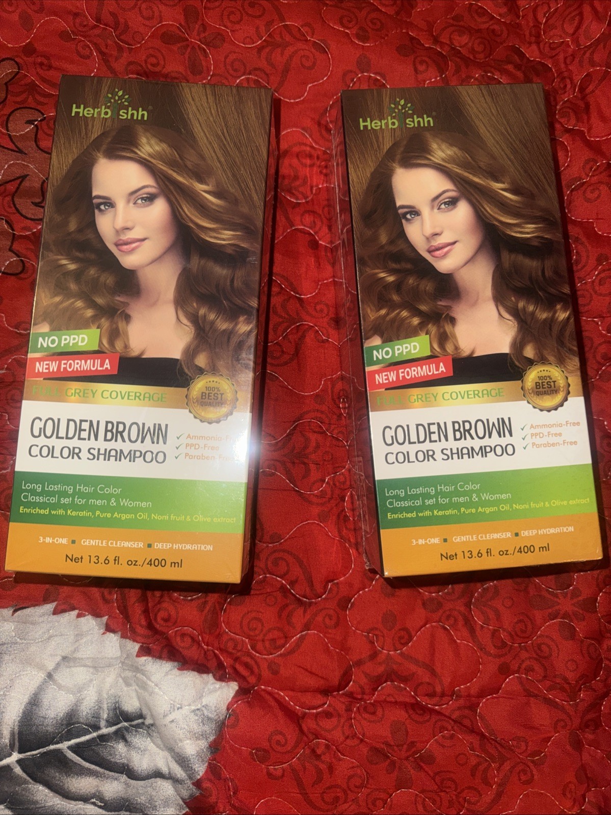 Herbishh Hair Color Shampoo Chestnut Brown Argan Oil, 13.6 .oz. X2