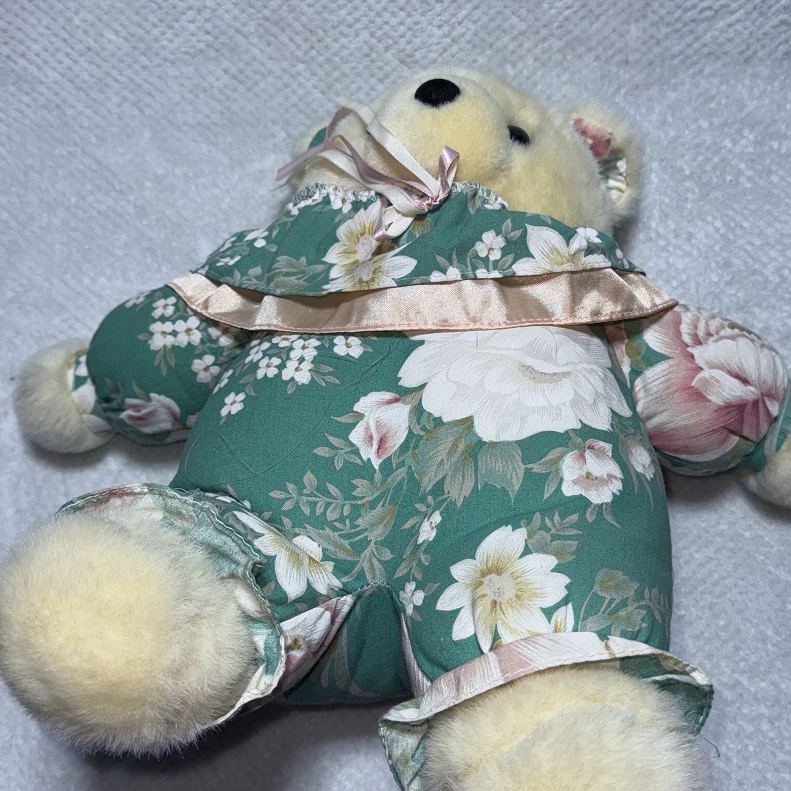 Vtg Floral Teddy Bear Stuffed Plush