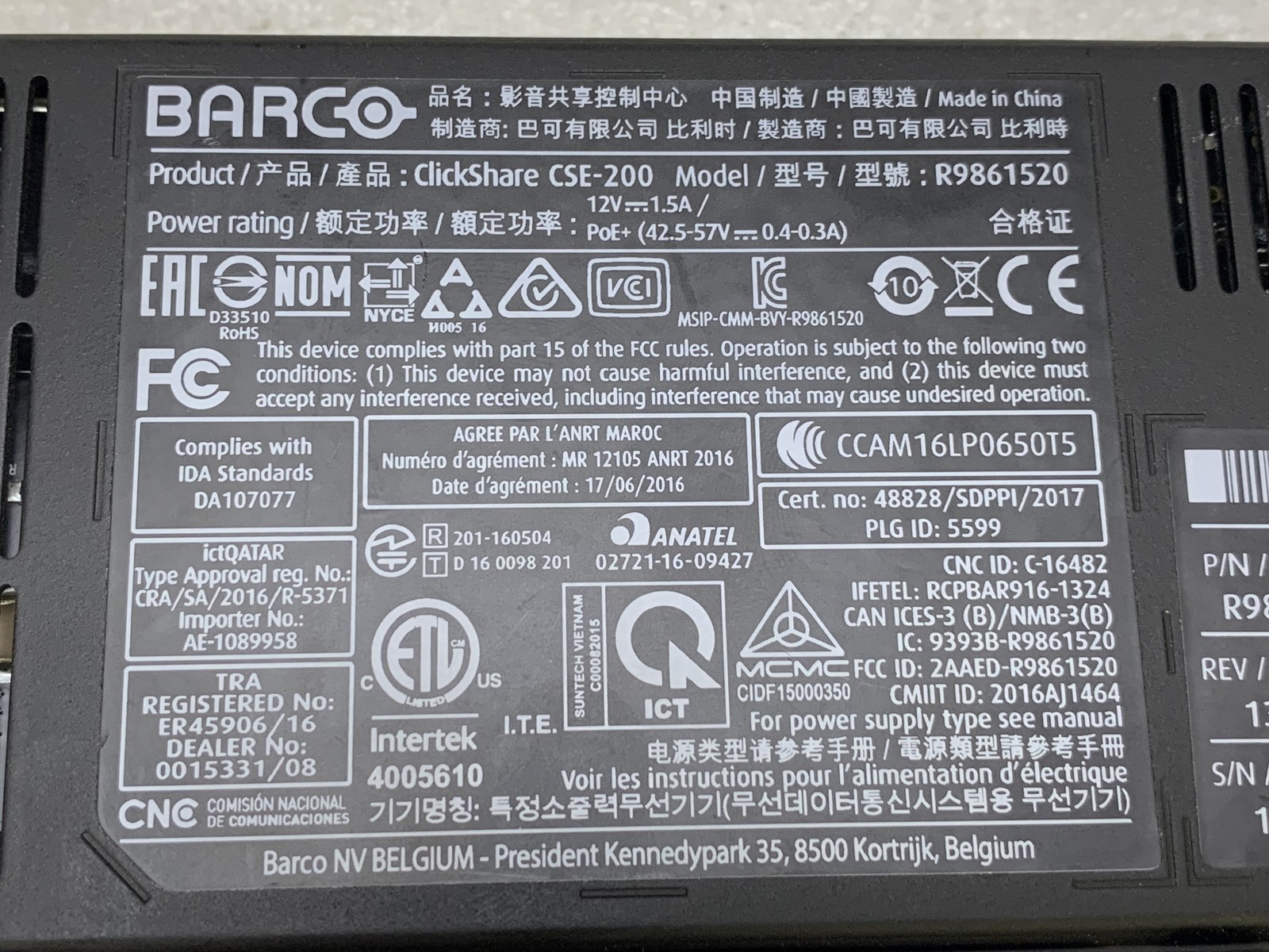 Barco Clickshare CSE-200 Wireless Presentation System w/ Antenna PWR CABLE