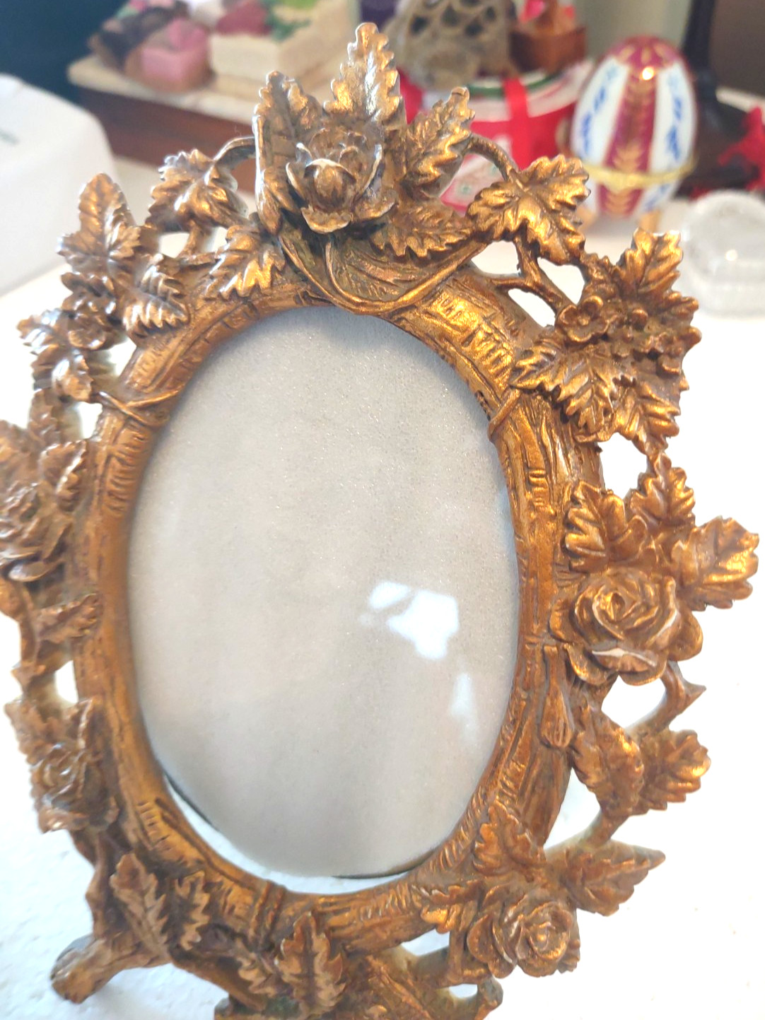 Vintage Gold Roses Picture Frame Oval Floral Rose Style Tabletop Ornate 8 x 6