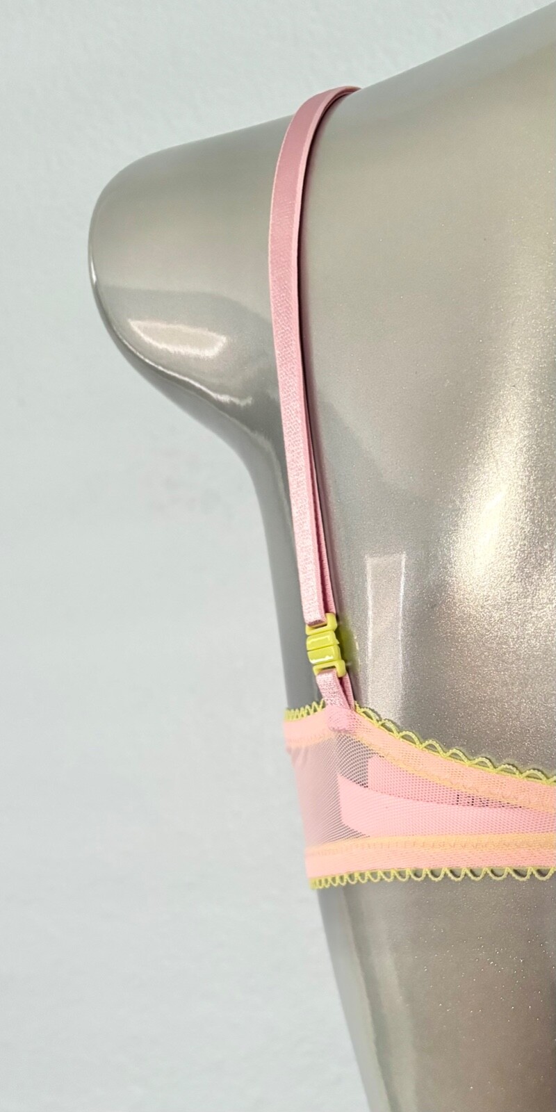 Victoria's Secret Bra Nwt Pink Sheer Mesh Yellow Lace Unlined Underwire Demi