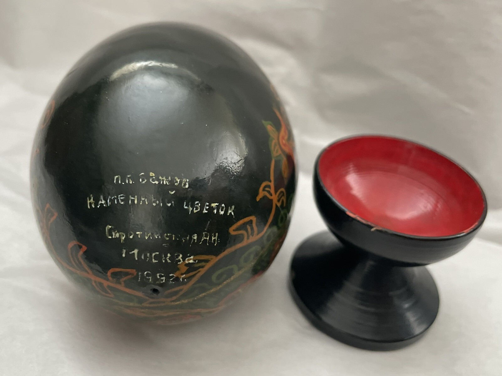 Vintage Russian Wooden Egg Hand-painted Signed Moscow 1992 Black Gold Display