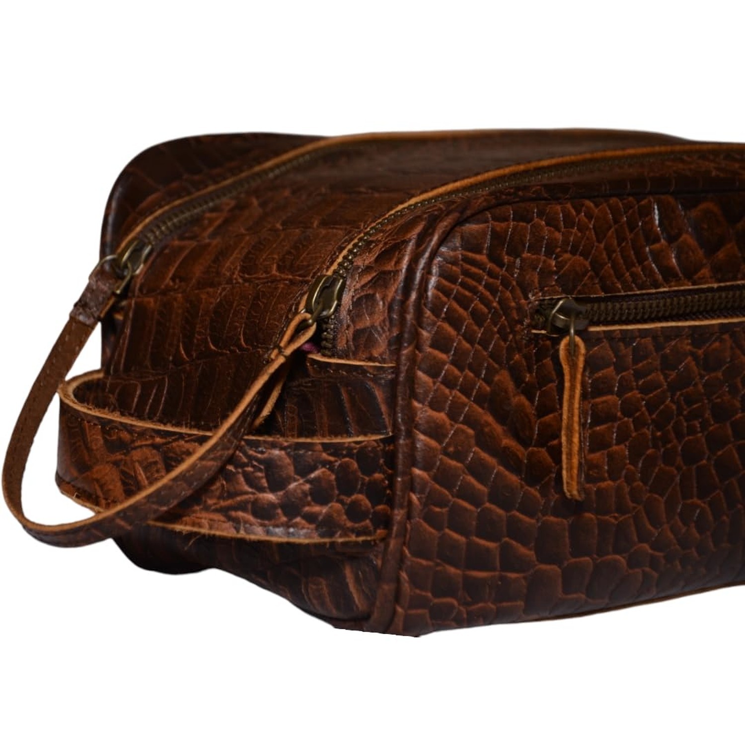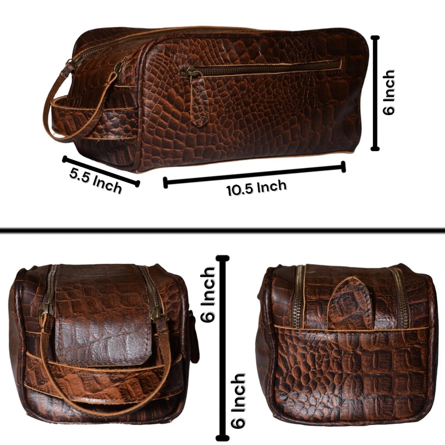 Premium Buffalo Leather Unisex Toiletry Bag Travel King Size Shaving kit Ac...
