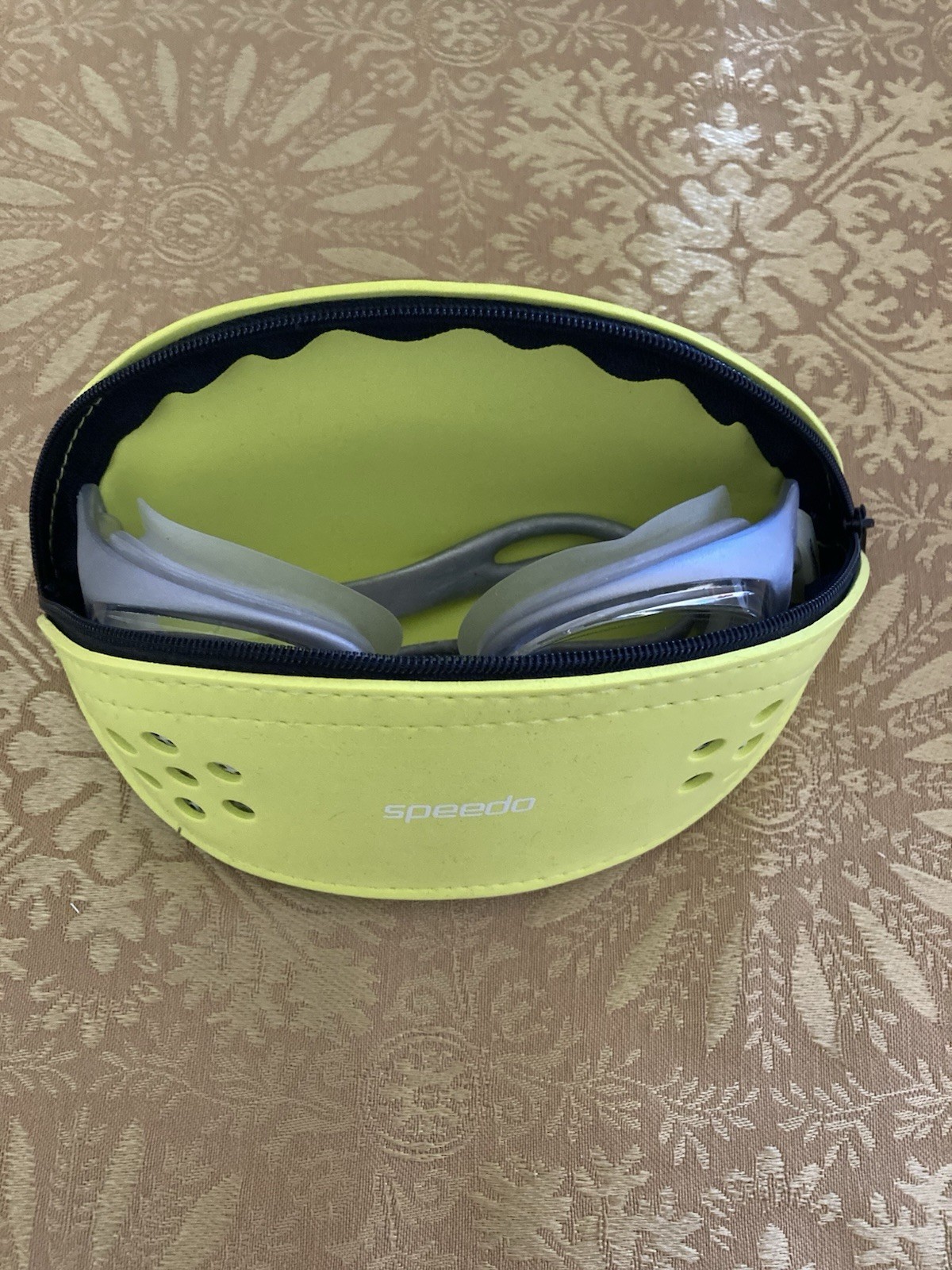 как выглядит Adult-unisex Speedo Swim Goggles Gray W/ Yellow Case. Pre-owned, Never Worn фото