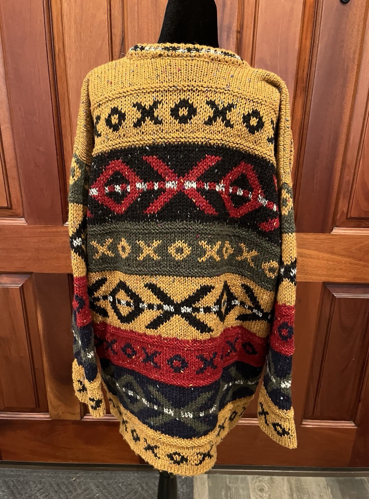 VTG GAELTARRA Ireland NORDIC MENS SZ L 100 WOOL Chunky SWEATER GEOMETRIC