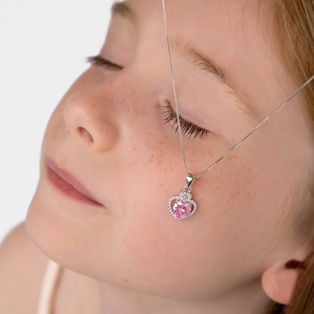 925 Sterling Silver Pink Clear Cubic Zirconia Heart Pendant Necklace for Girls