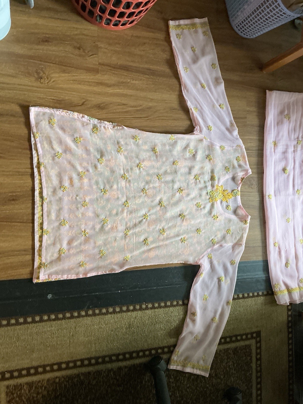 как выглядит Polyester Chiffon Embroidered Chikan Kurta Kurti Top, 44 Bust, 34 Long, New фото