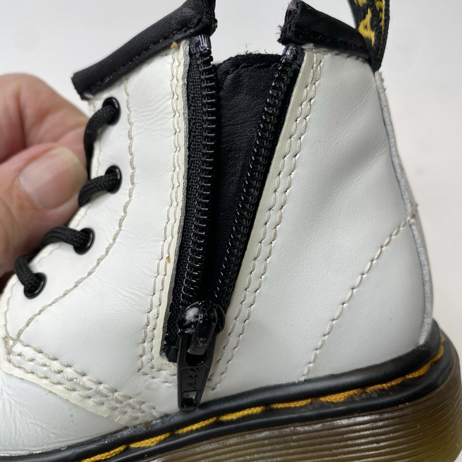 как выглядит Dr. Martens Combat Boots 1460 I Infant Sz 4 Toddler Child White Leather Zip фото