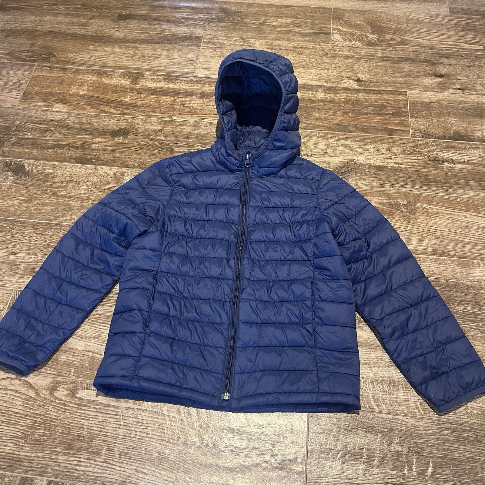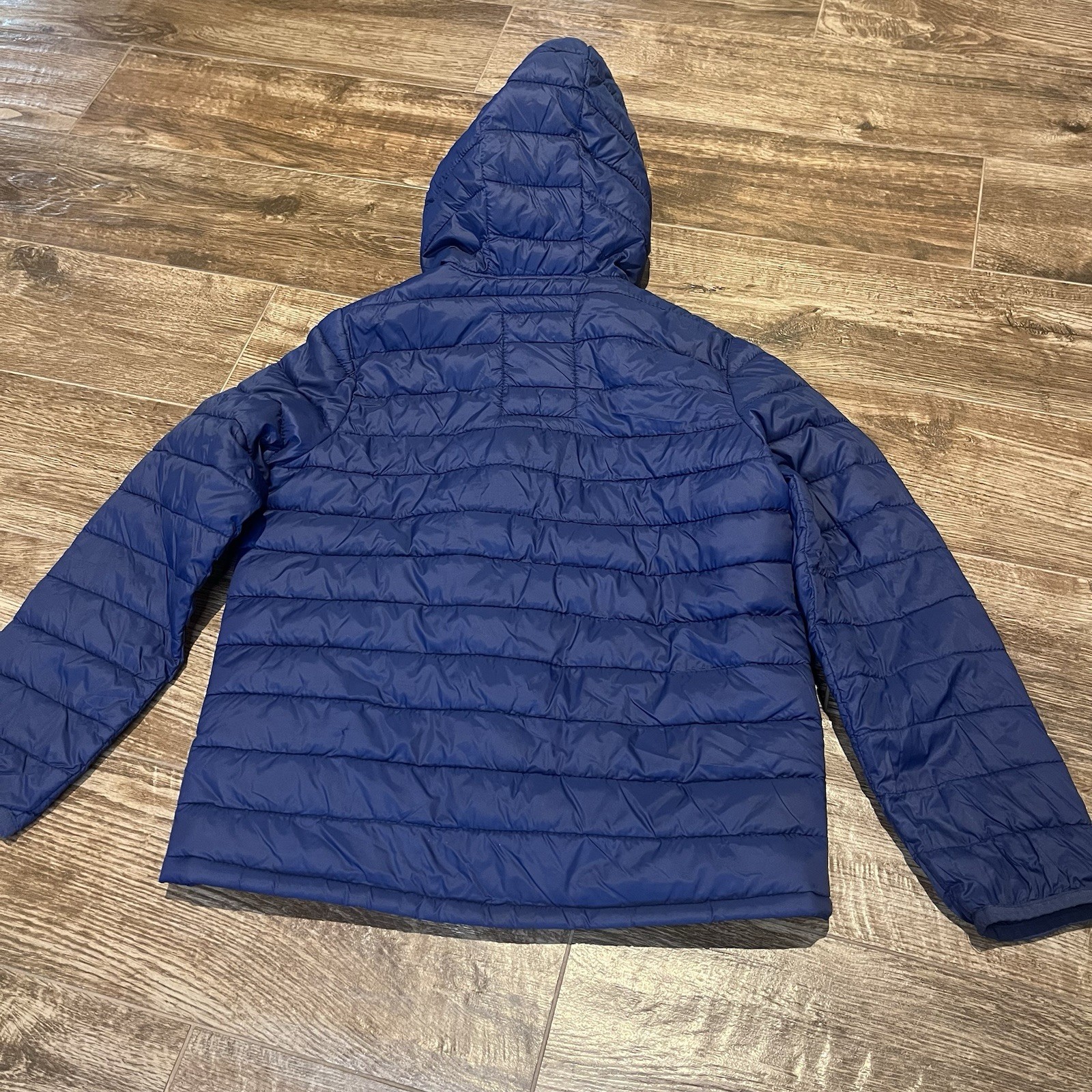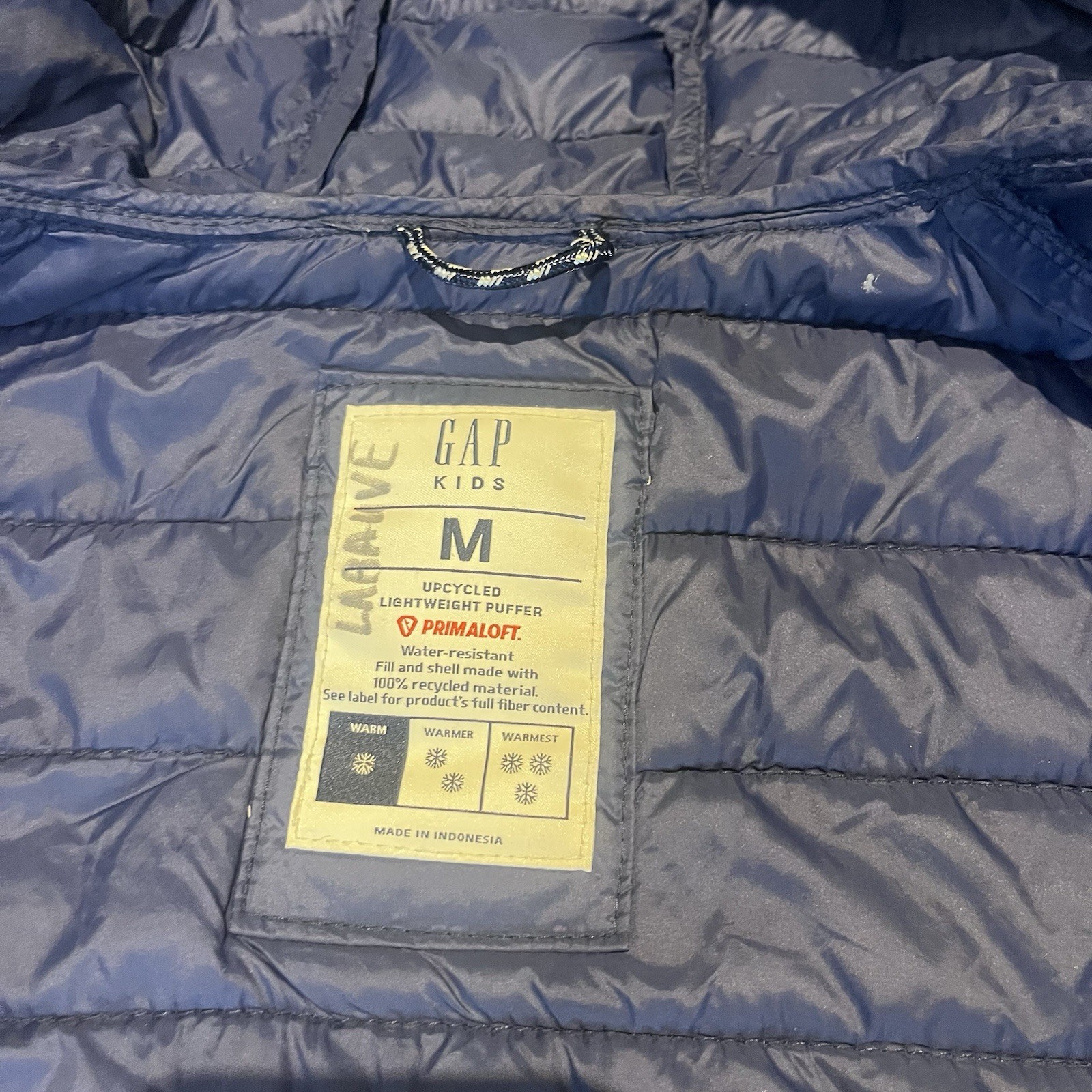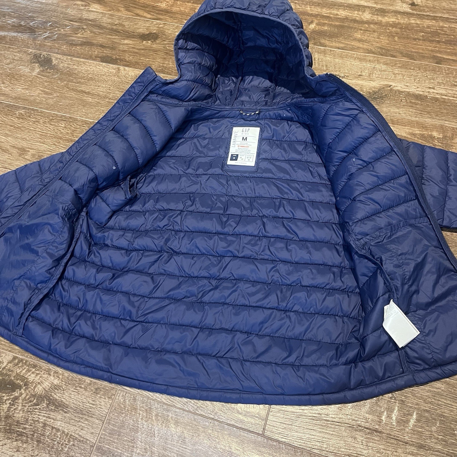 как выглядит Gap Kids Puffer Jacket Boys Medium Blue Primaloft Quilted Puffer Coat Hooded фото
