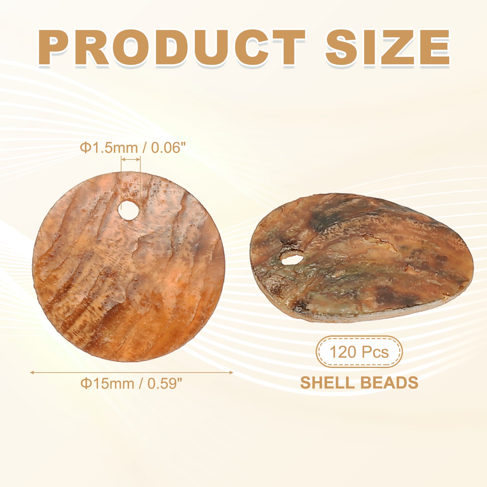 120Pcs Shell Beads for Jewelry Making, Flat Shell Coin, Light Orange