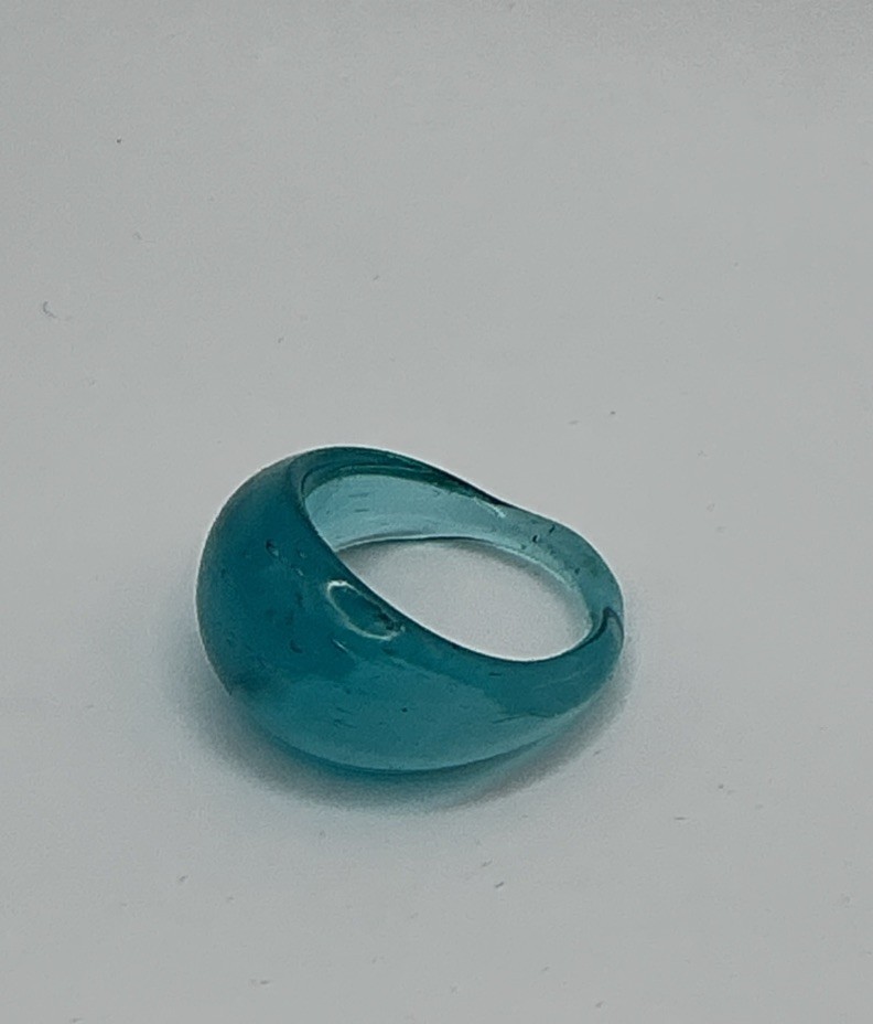 как выглядит AG160 Art Glass Ring Teal Size 8 Bright See-thru Vibrant фото