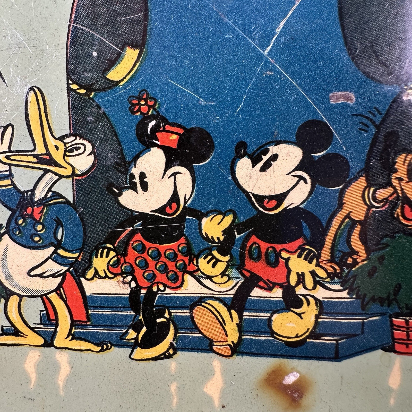 как выглядит 1930s Walt Disney Enterprises Metal Tray Ohio Art Co Tin Mickey Mouse W. Dent фото