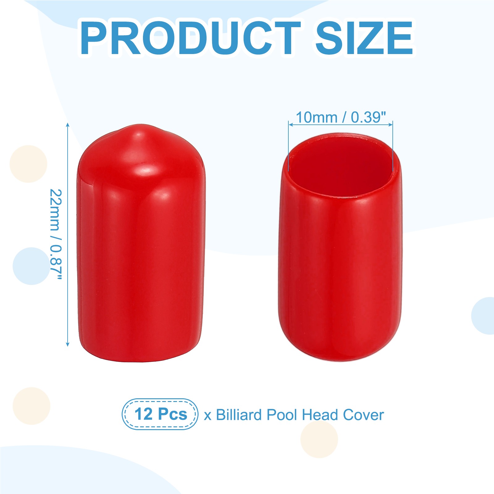 Pool Tip Cover Rubber Cue Protector Billiard Pool Cover 10mm 12Pcs Red