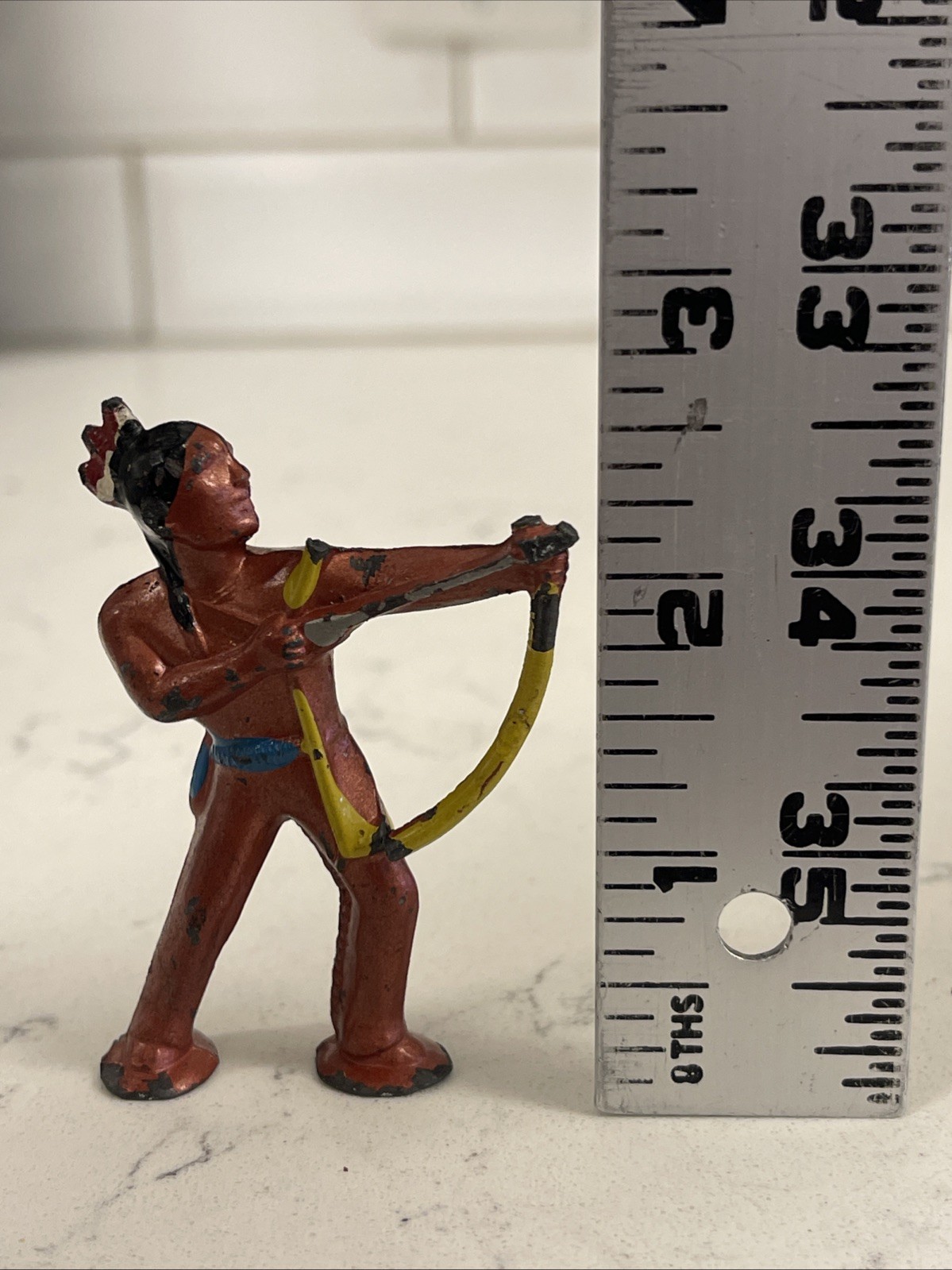 как выглядит BARCLAY VINTAGE LEAD FIGURE - POD-FOOTED INDIAN - BOW ARROW Arrow Damage фото