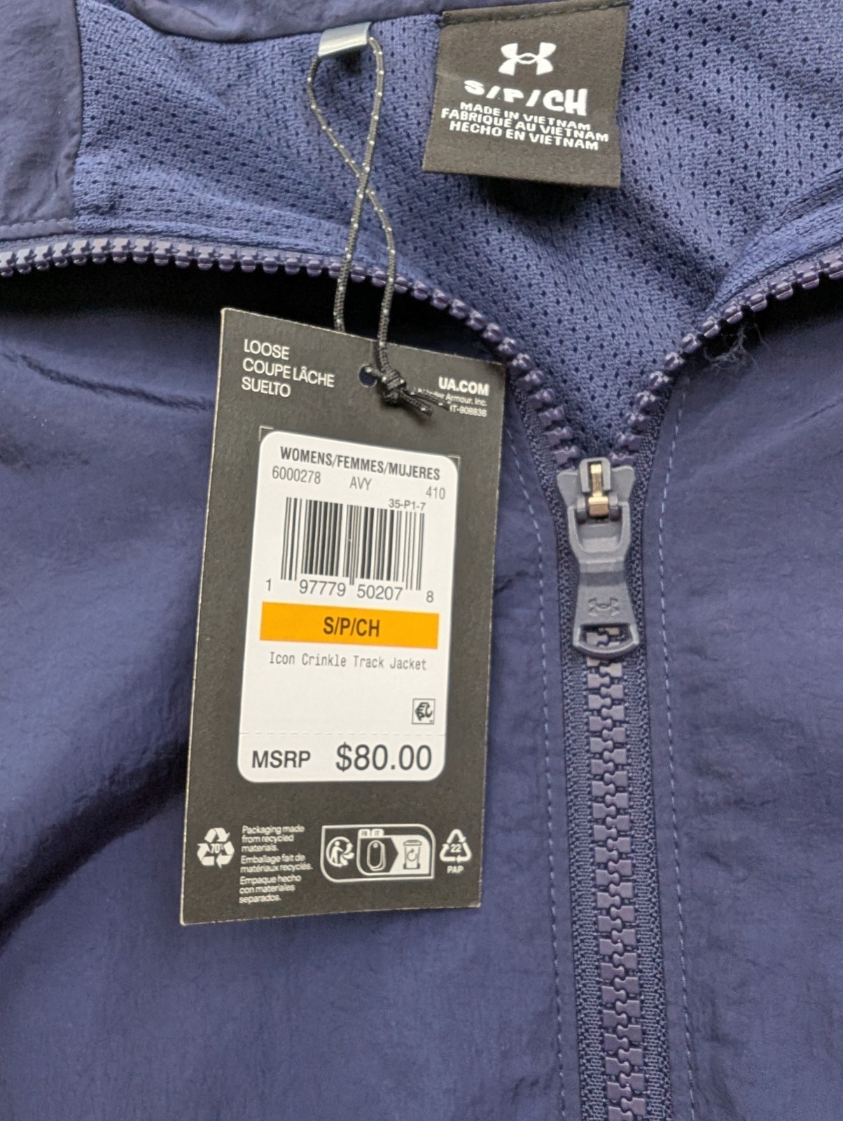 New Under Armour Womens Icon Crinkle Track Jacket Windbreaker 80 Sz Small Loose