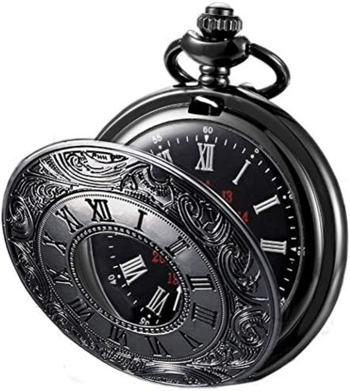Vintage Pocket Watch for Men with Roman Numerals and Chain, 1Pc
