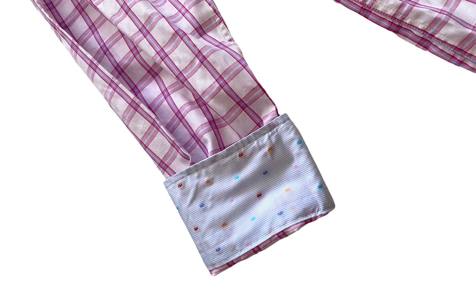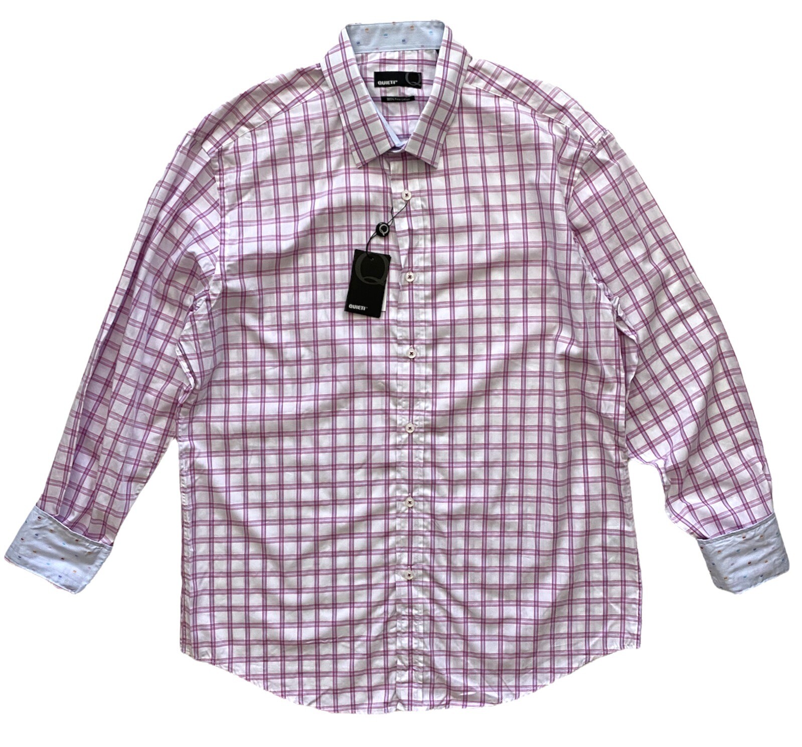 Quieti Nwt White w/ Pink Blue Check Flip Cuff Long Sleeve Shirt XL