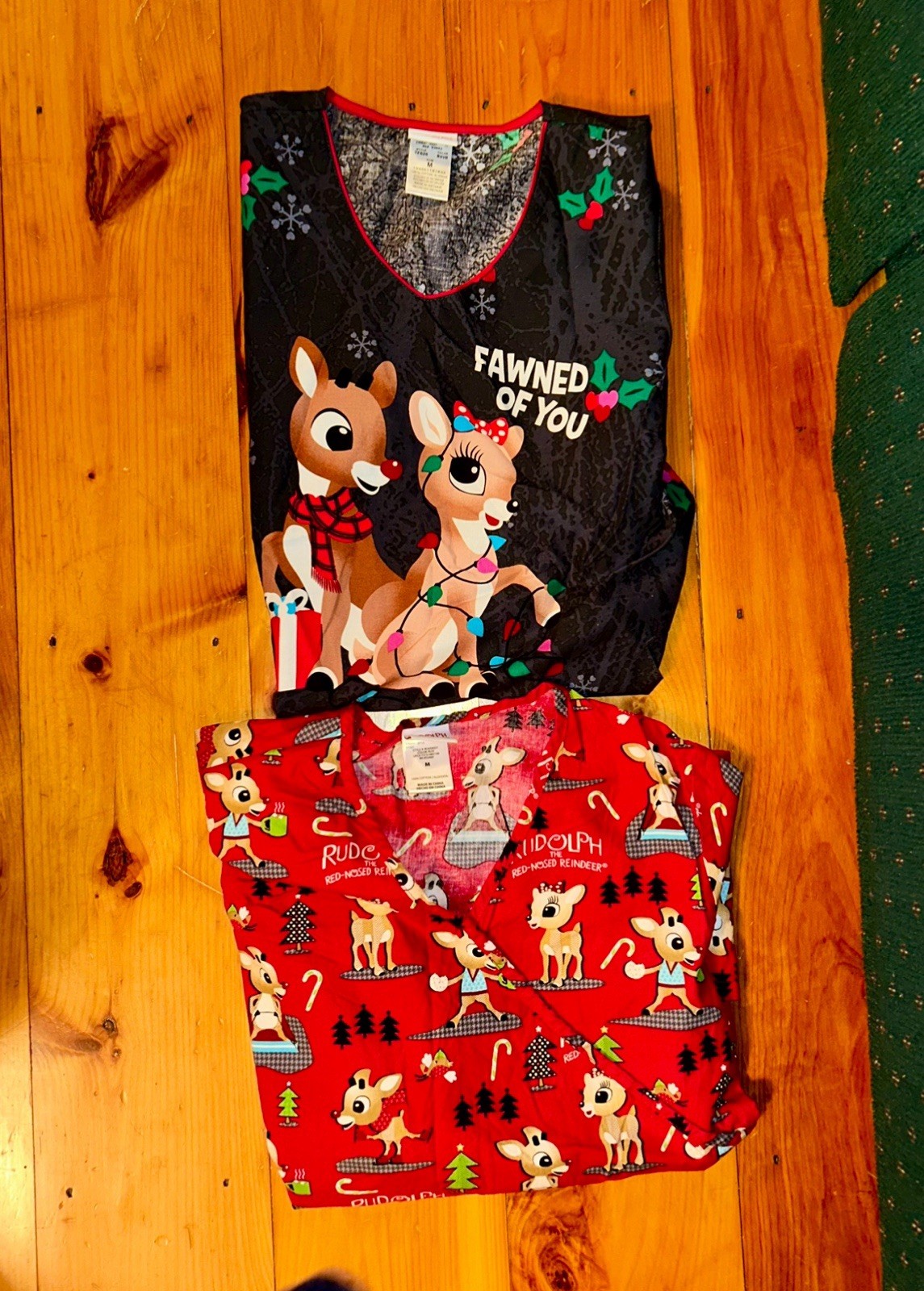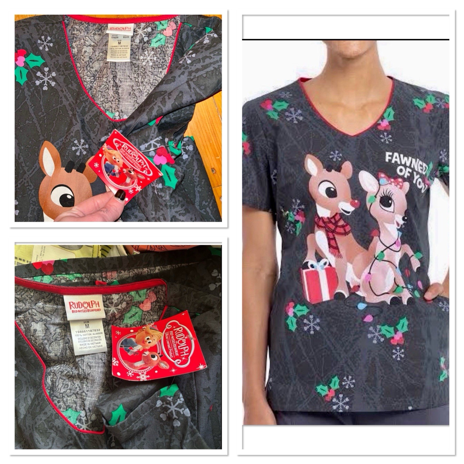 как выглядит Rudolph Christmas Scrub Tops, Size Medium фото