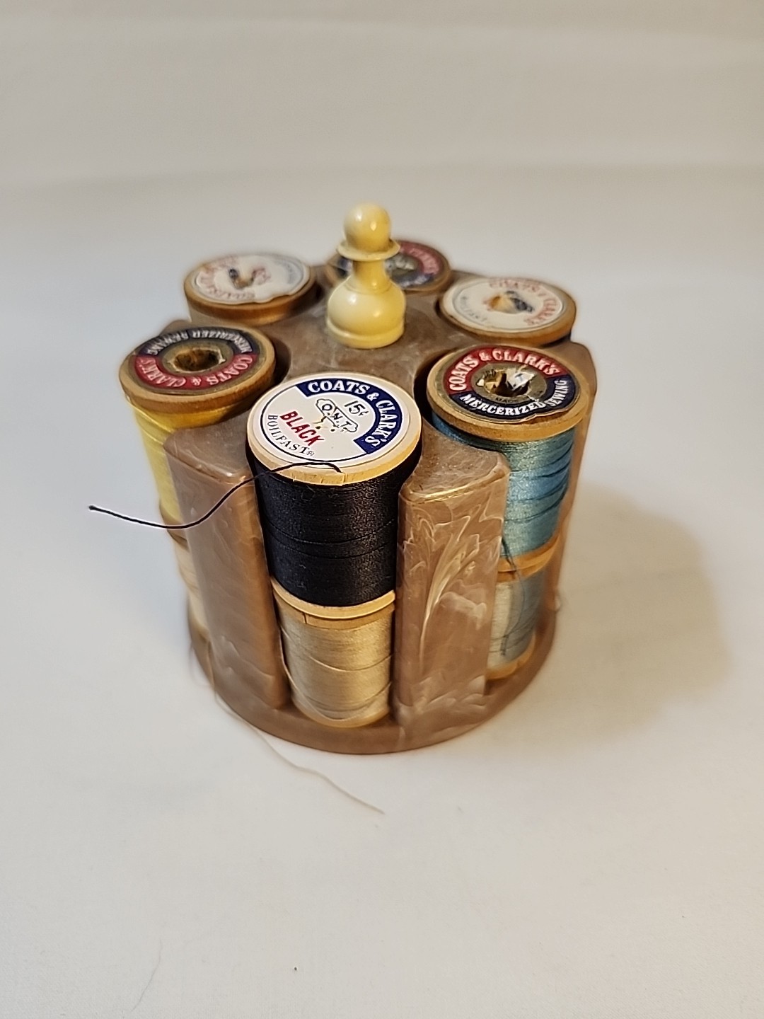Vtg Sewing Thread Caddy Wooden Spools Needle Packs Farmhouse Decor Cottagecore