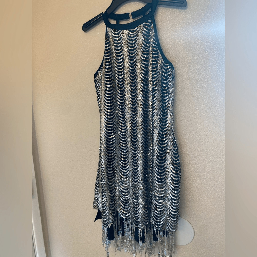 как выглядит WEISSMAN Dance Costume silver sequin fringe dress flapper Charleston 9468 LA фото
