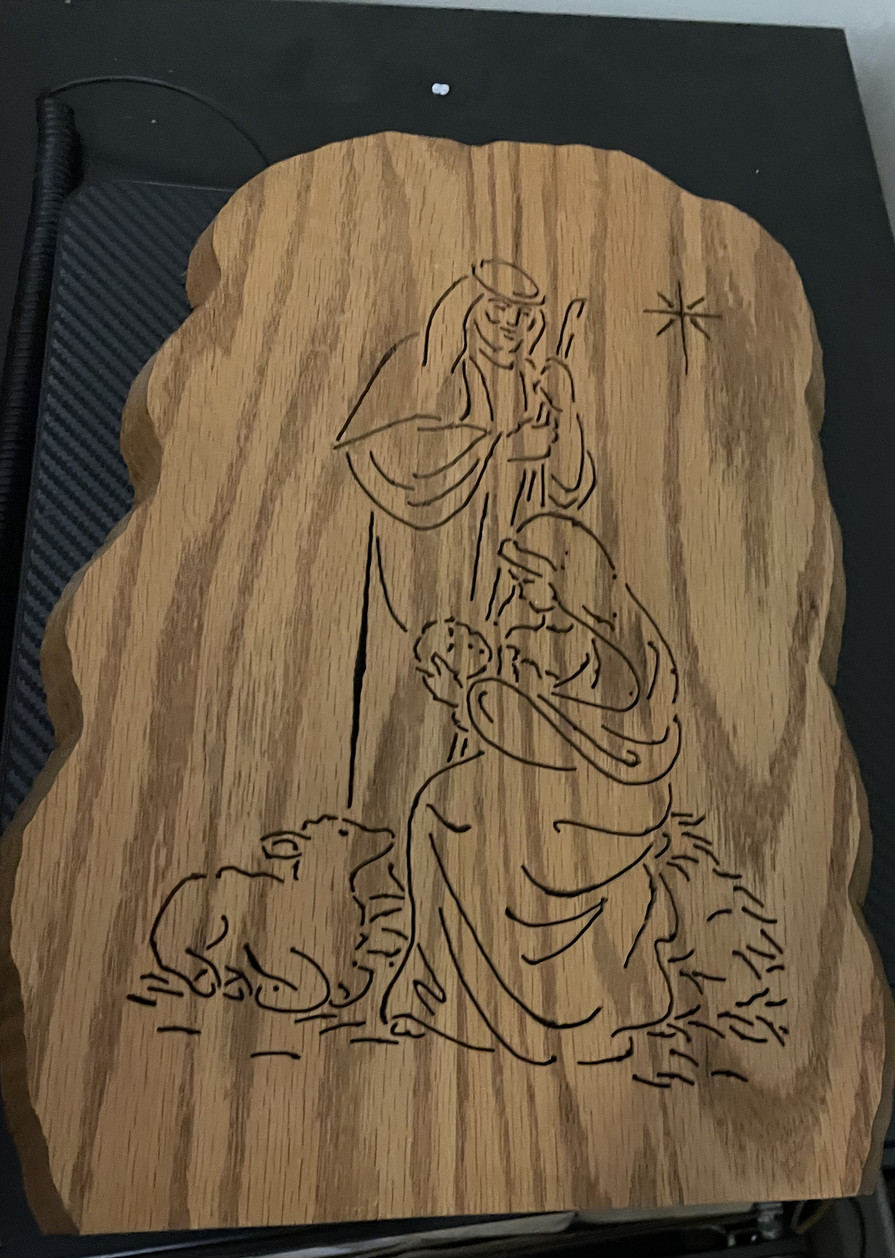 Wood Art of a laser engraved nativity scene approx 13.5 x 9 see note