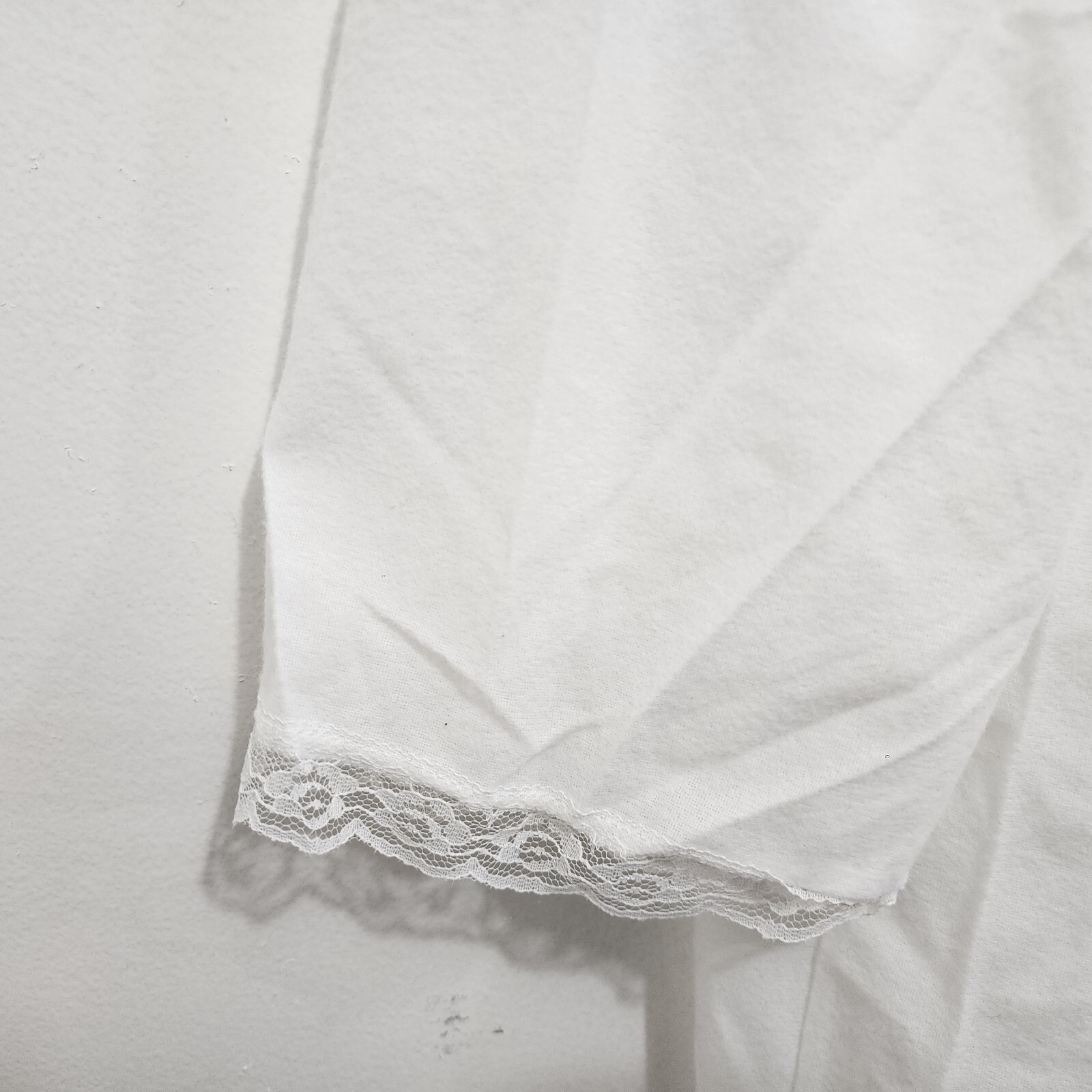 Vintage Spotlight Flannel Embroidered Lace Long Nightgown Nightie White XXL