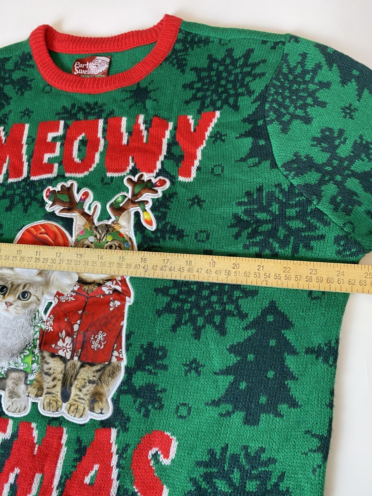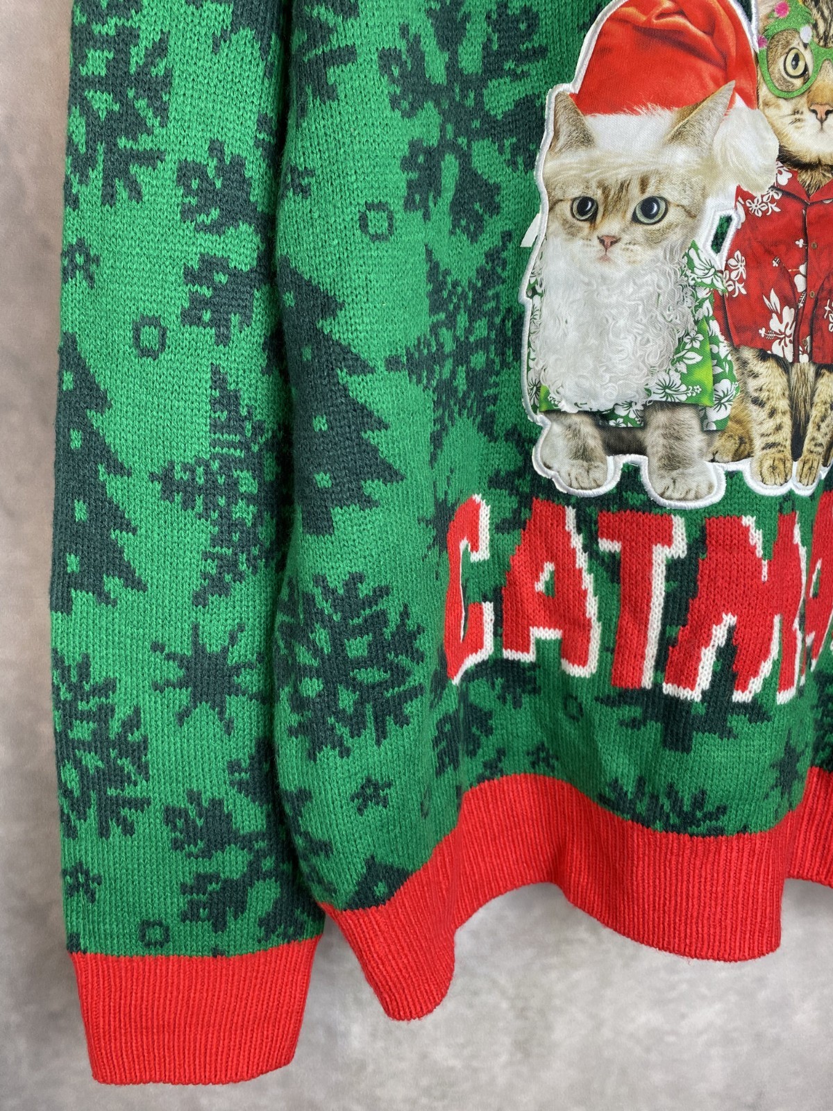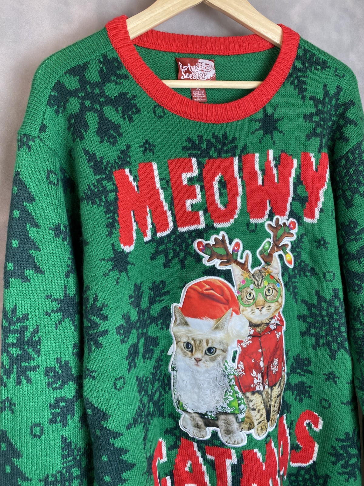 как выглядит Meowy Catmas Adult XL Green Red Cat Christmas Reindeer Ugly Party Sweater фото