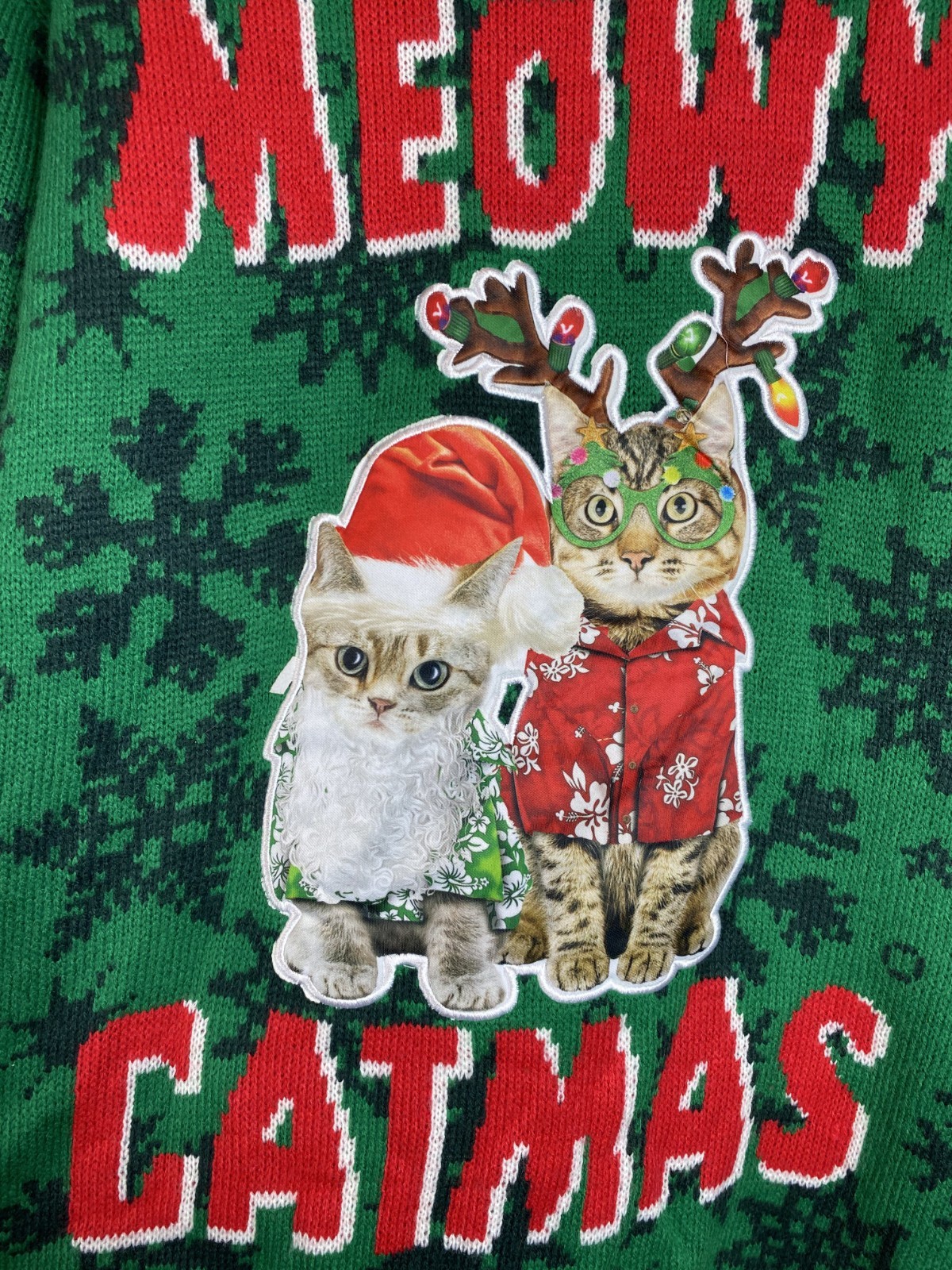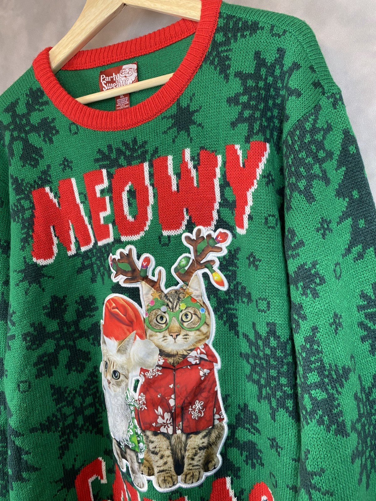 Meowy Catmas Adult XL Green Red Cat Christmas Reindeer Ugly Party Sweater
