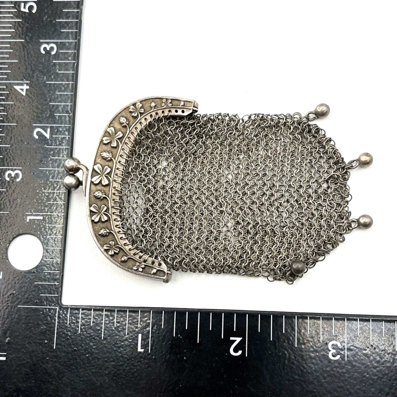 Antique Victorian Ch telaine Sterling Silver Chain Mail Coin Purse W/ Dangles