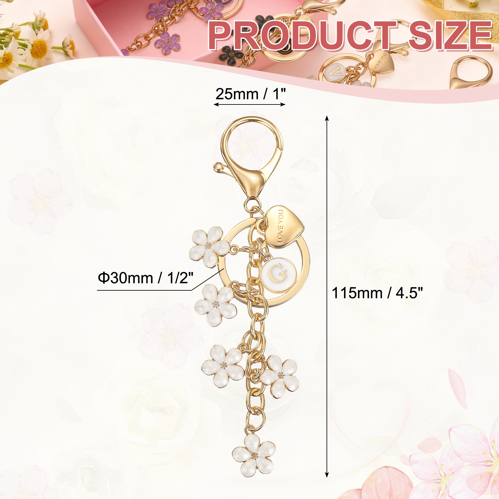 как выглядит Initial Letter Keychain, Cute Flower Letter-G Keychains for Women Girls White фото