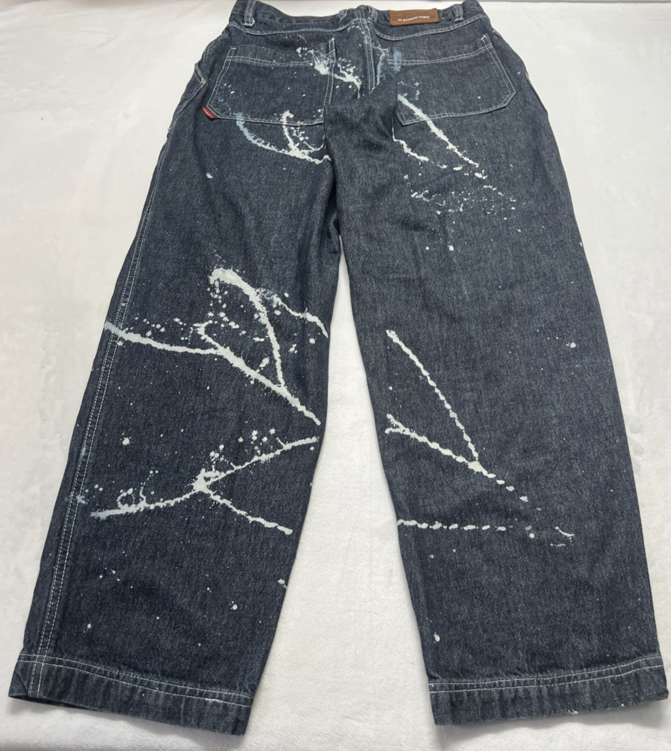 Vintage Y2K FUBU Platinum Wide Leg Baggy Jeans Mens 34x34 32 Splattered Bleach
