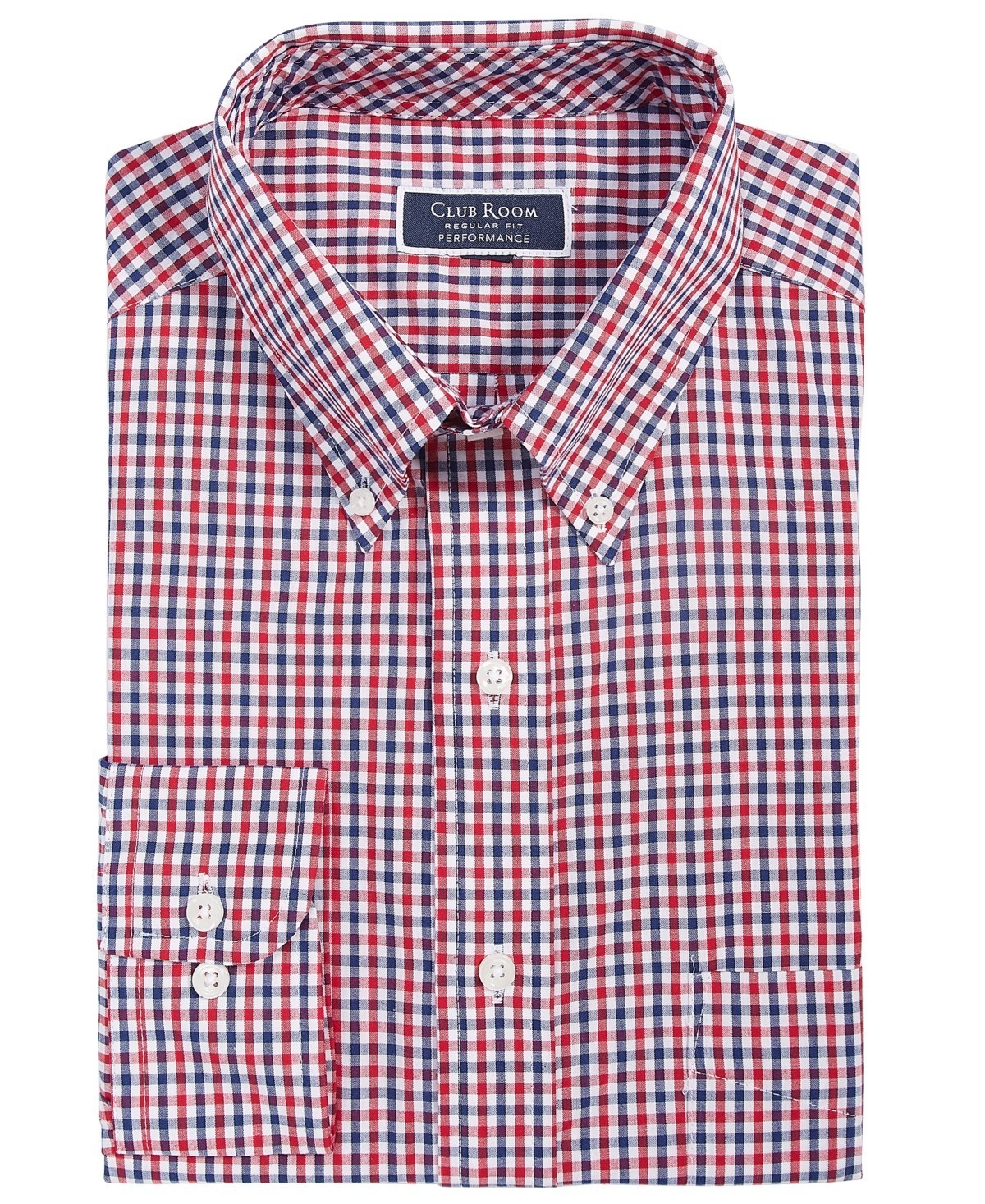 Club Room Men Regular fit Dress Shirt Shirt, Red Navy, 18.5 in 34/35