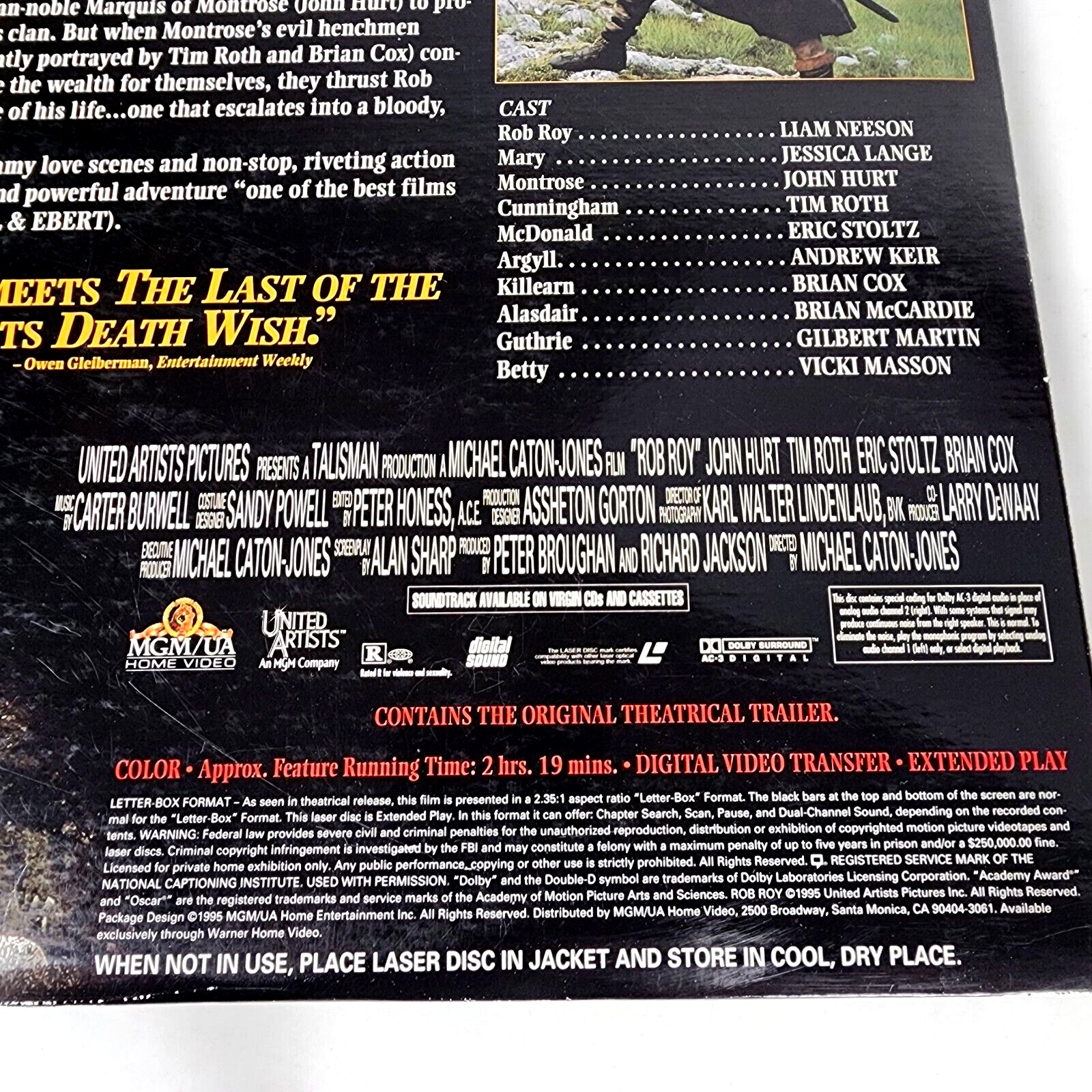 Rob Roy Laserdisc Deluxe Letterbox 2 Disc Liam Neeson Jessica Lange Movie Film