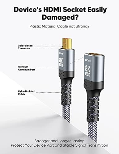 8K 4K HDMI Extender 2.1 Ultra High Speed Male to Female Adapter 1FT