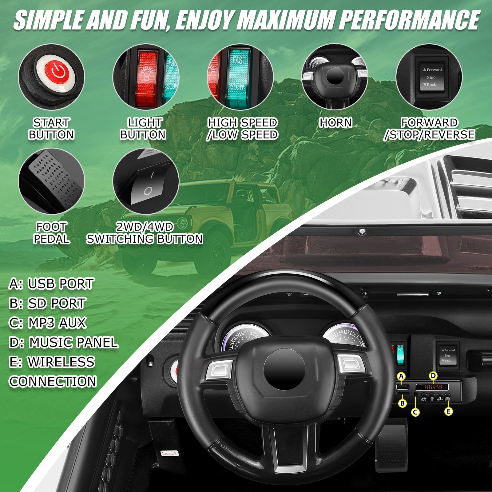 24V Kids Car Toy Ride on Truck Powerful Wheels with Remote Bluetooth LED Lights