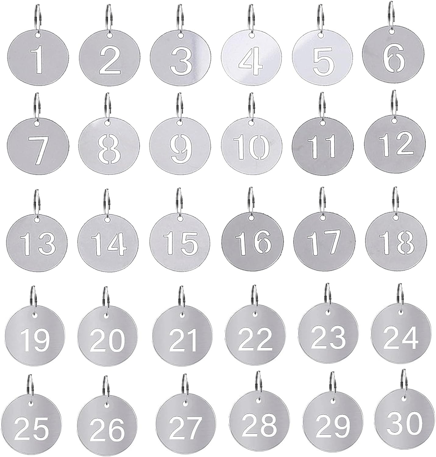 1-30 Key Tags with Labels Stainless Steel Numbered Tags Key Ring Metal Tags Coat