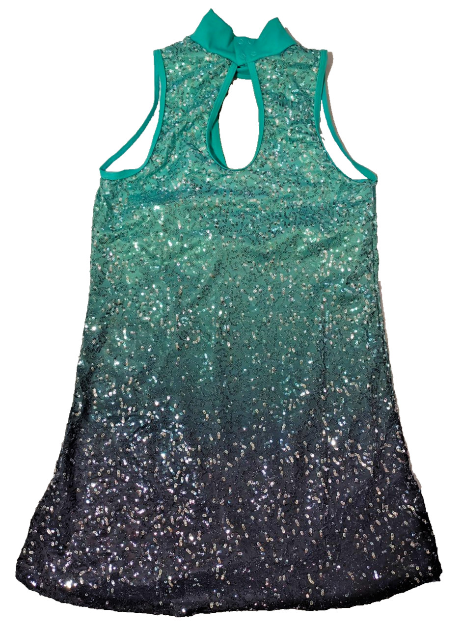 Balera Girls Jazz Costume Teal Umbra Color to Dark Green Full Sequin Dress Sz SA