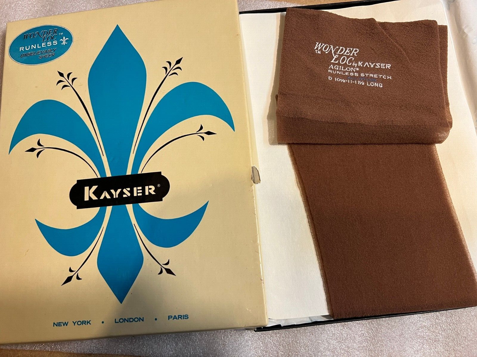 как выглядит NOS Vtg BOX 3 Pr 10.5-11.5 Long Nylon Stockings Hosiery Kayser WonderLoc Willow фото