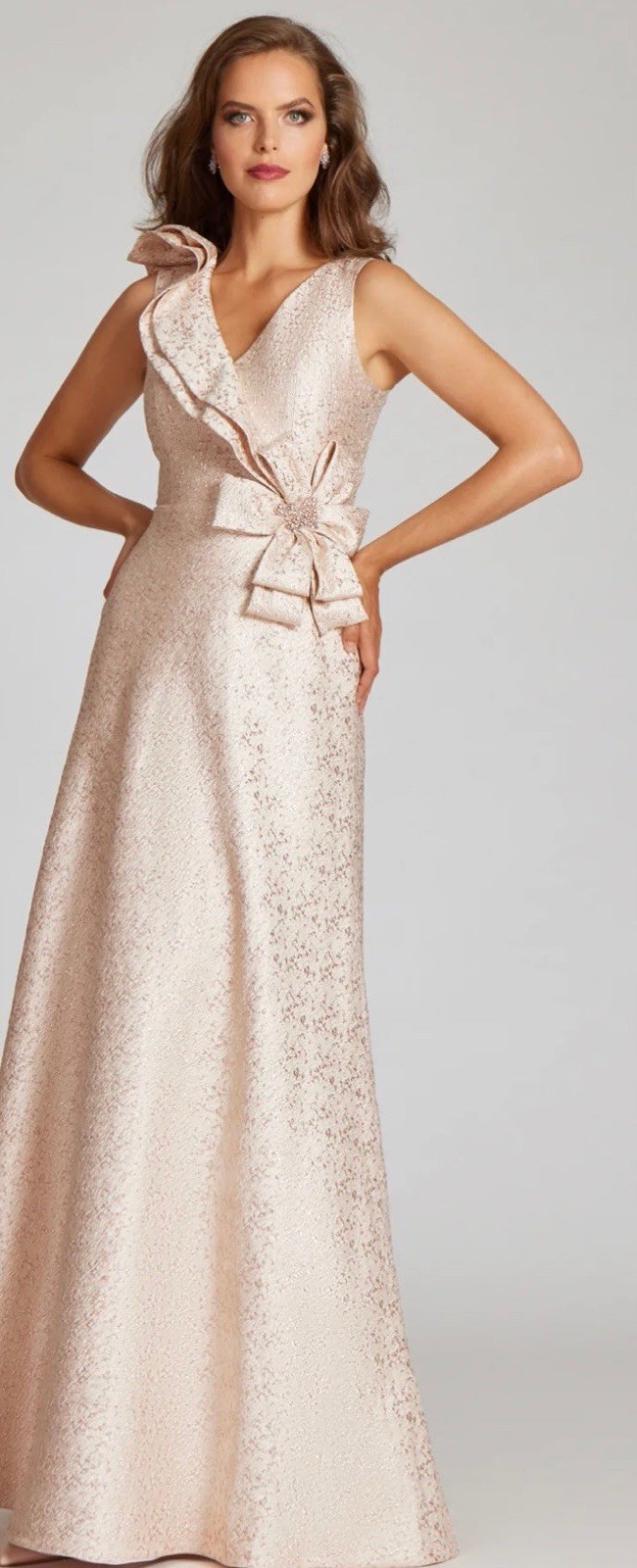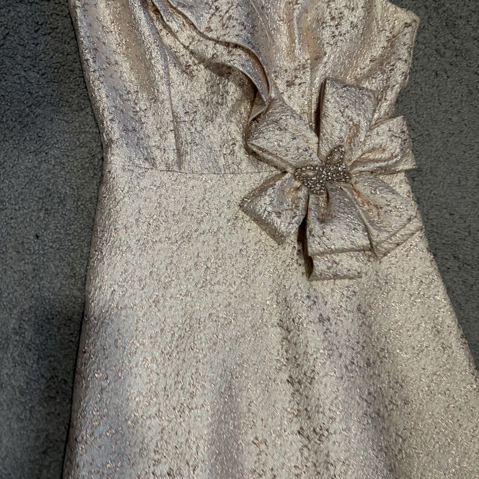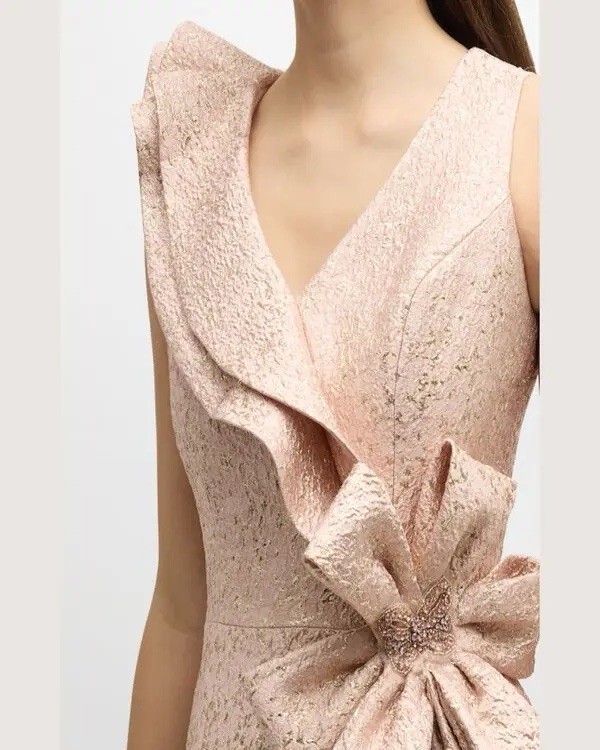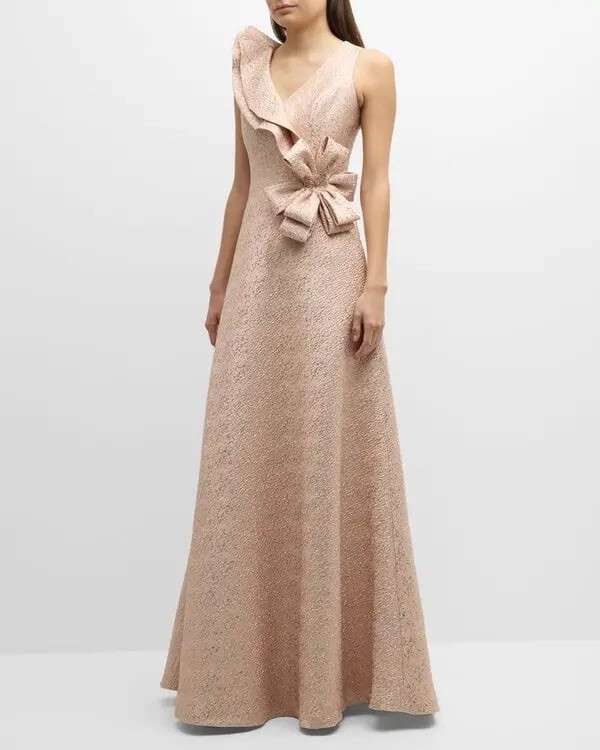 как выглядит Rickie Freeman For Teri Jon Metallic Jacquard Gown In Blush Gold Size 8 820.00 фото