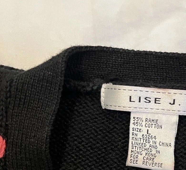 Black Floral Embroidered Cardigan Vintage 90s Lise J. Size L Cottage Whimsygoth