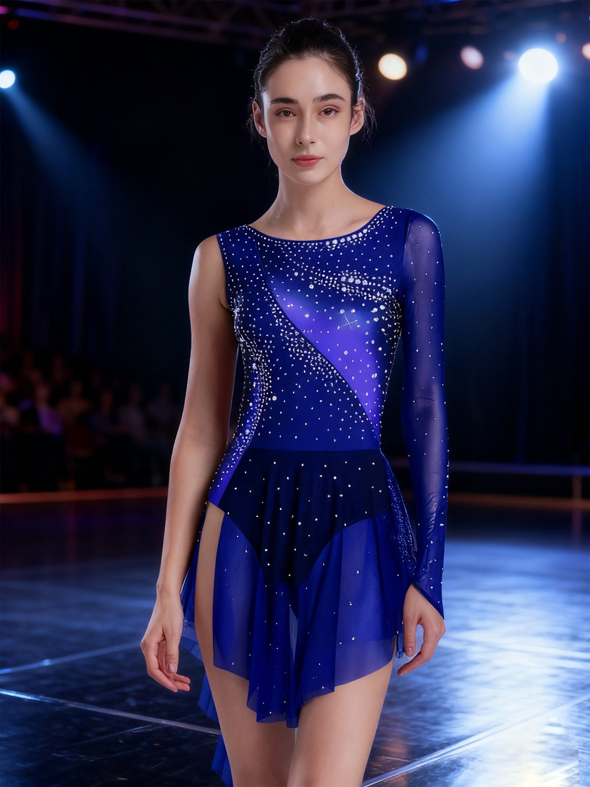 как выглядит Womens Dress Mesh Dancewear Stage Bodysuit Performances Leotard Irregular Hem фото